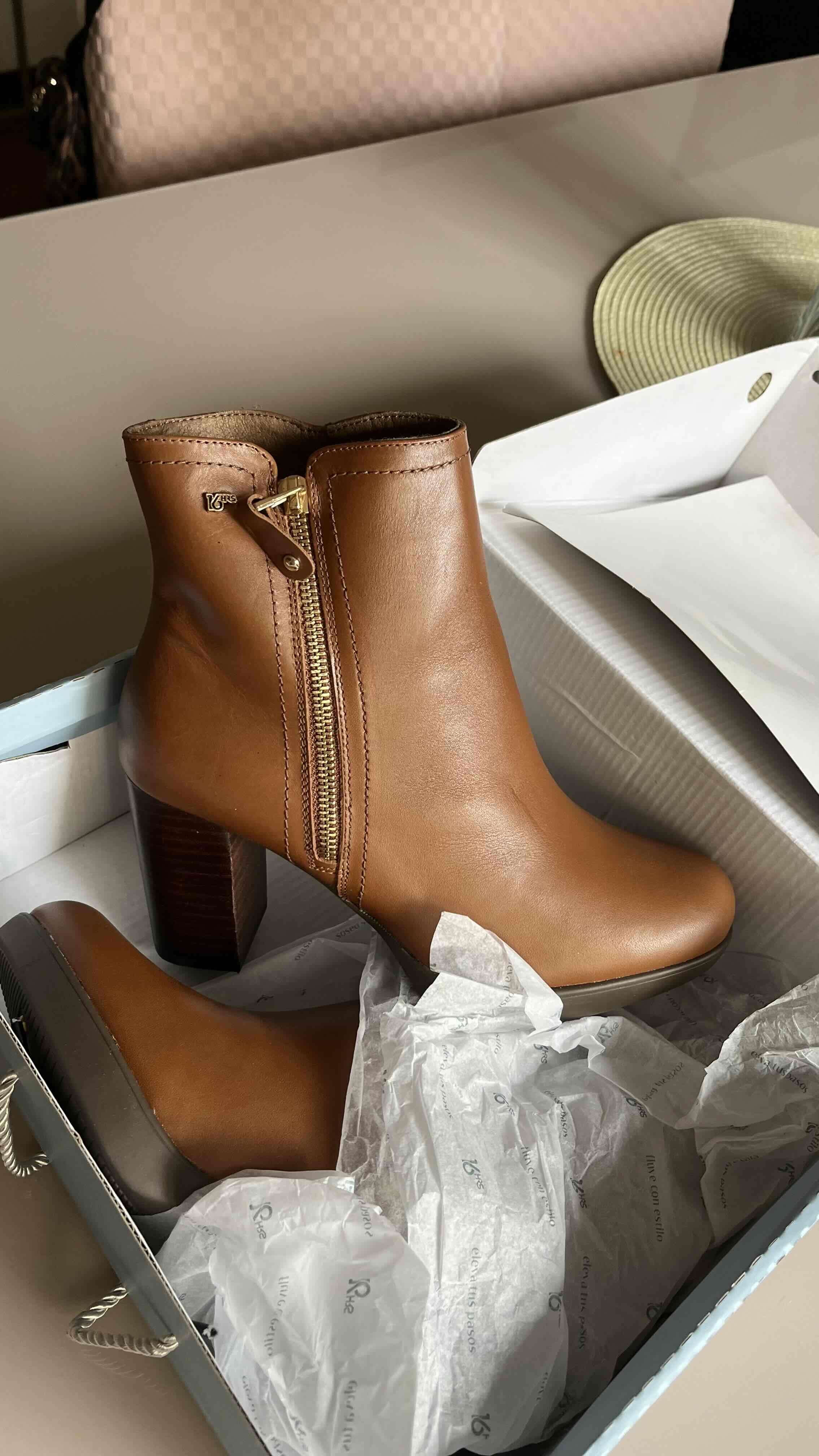Elegantes botines de cuero marrón con cierre lateral dorado. Ideales para el invierno con un estilo moderno.