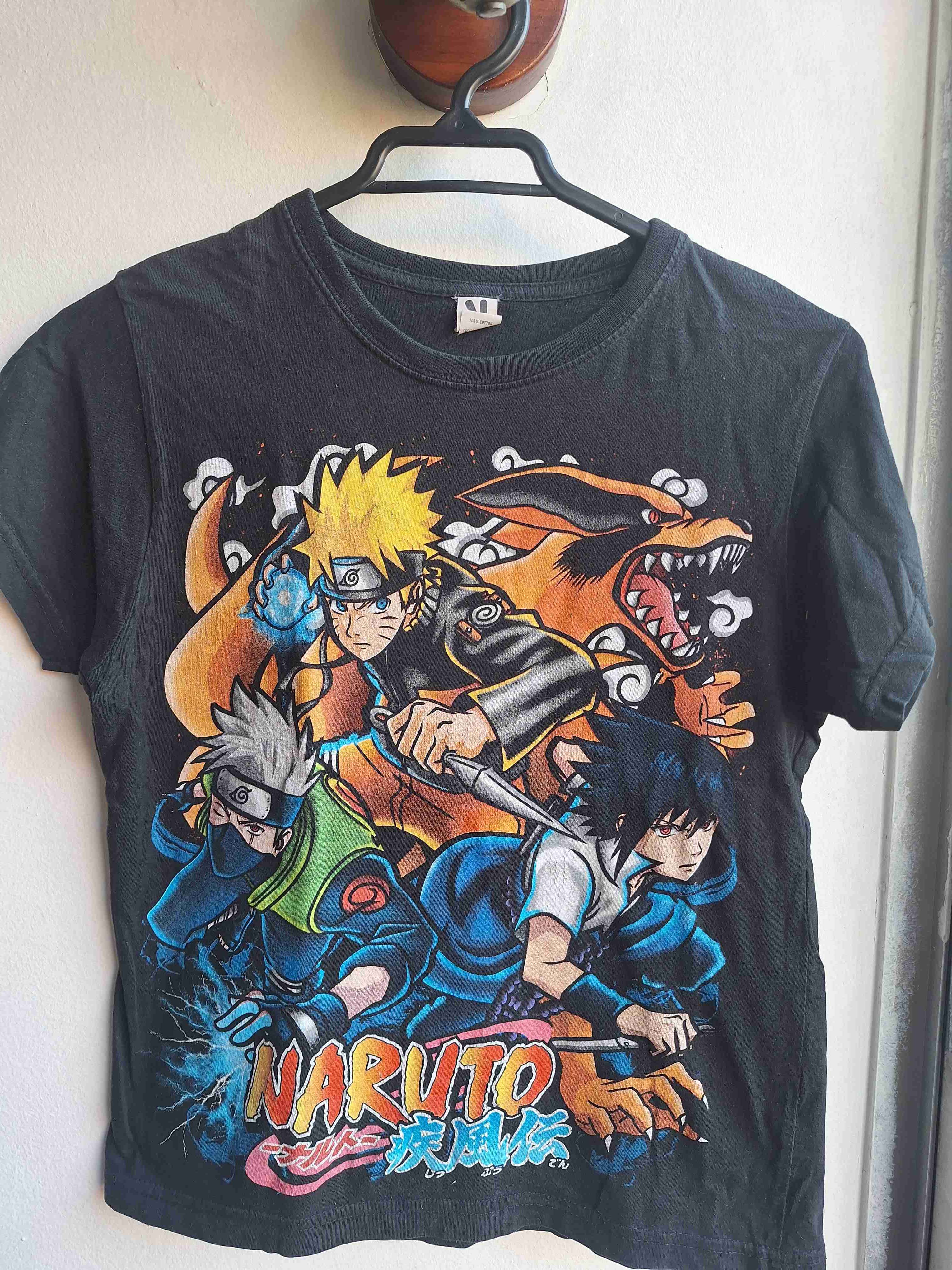 Polera en buen estado, ideal para fanáticos de Naruto. Estampado colorido de Naruto, Kakashi y Sasuke. Perfecta para ocasiones casuales.