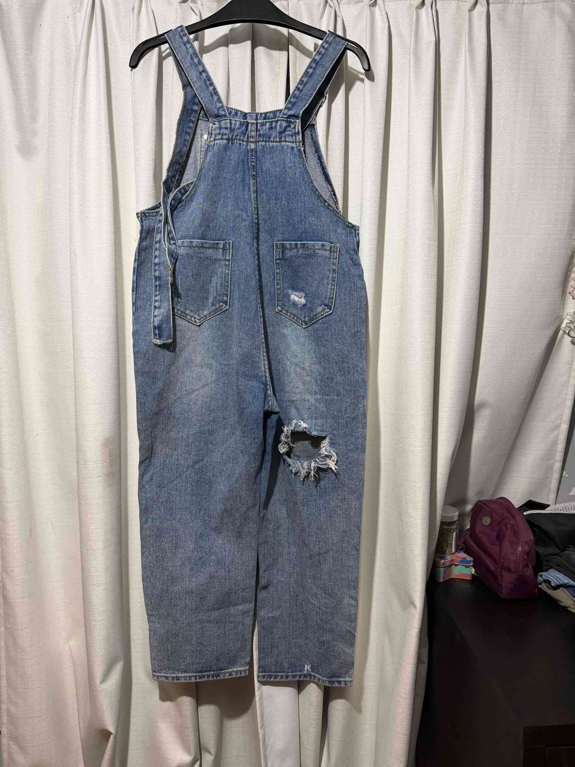 Overall de mezclilla estilo casual con detalles desgastados y rasgaduras. Ideal para un look relajado y moderno.