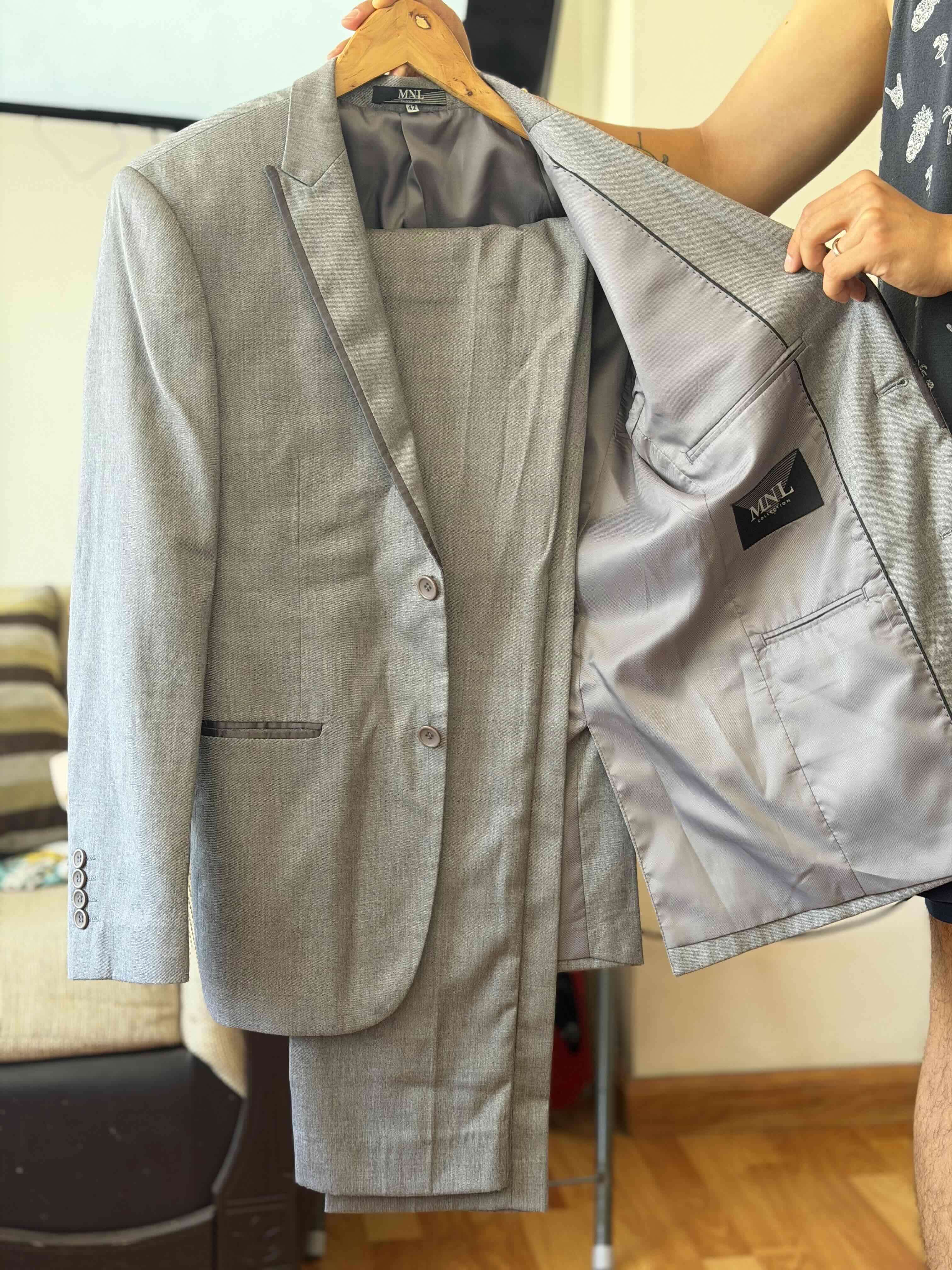 Traje gris claro en buen estado, ideal para ocasiones formales. Estilo moderno y sofisticado.