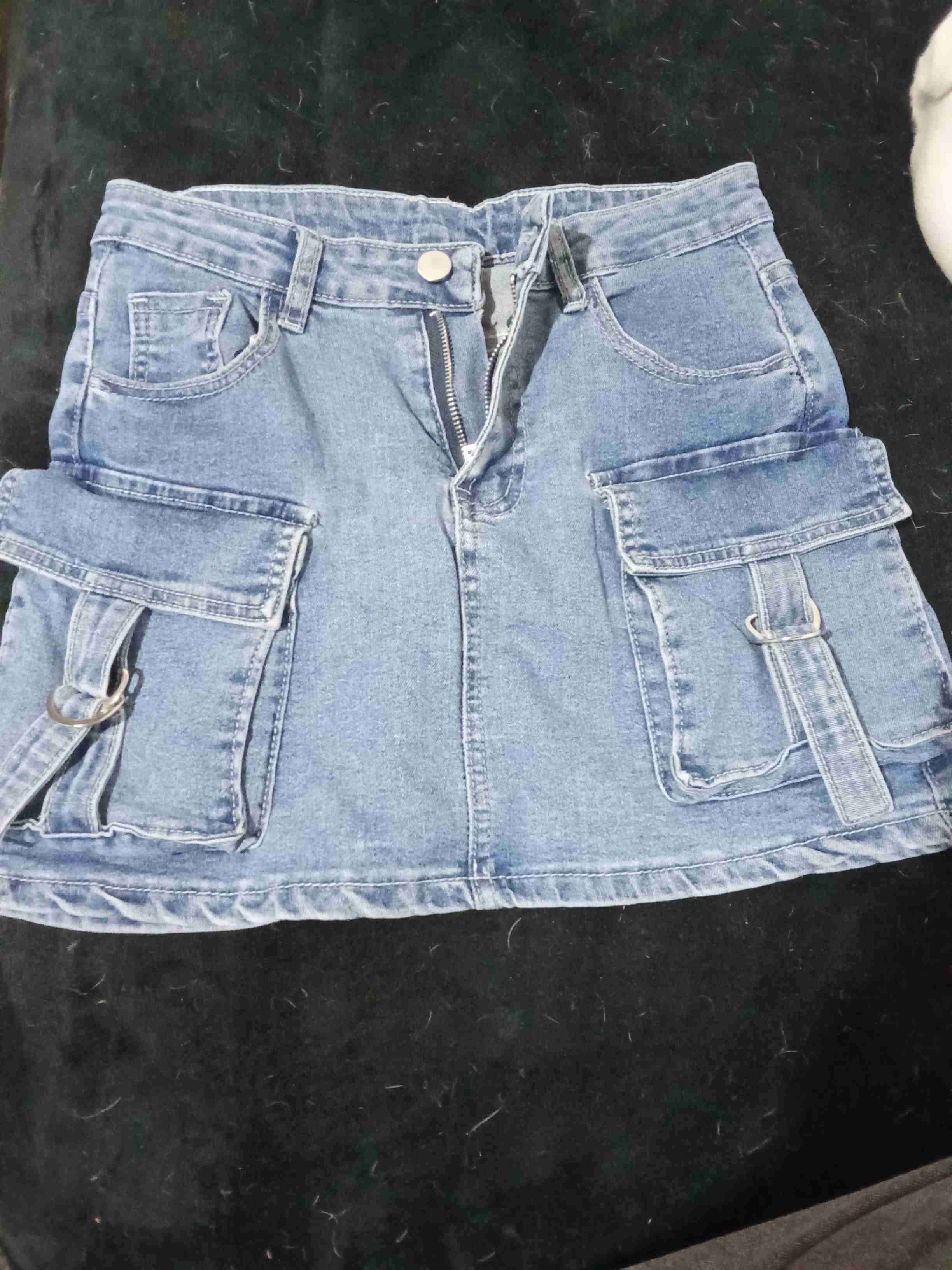 Falda de mezclilla azul con bolsillos grandes. Perfecta para un look casual con estilo. En buen estado general.