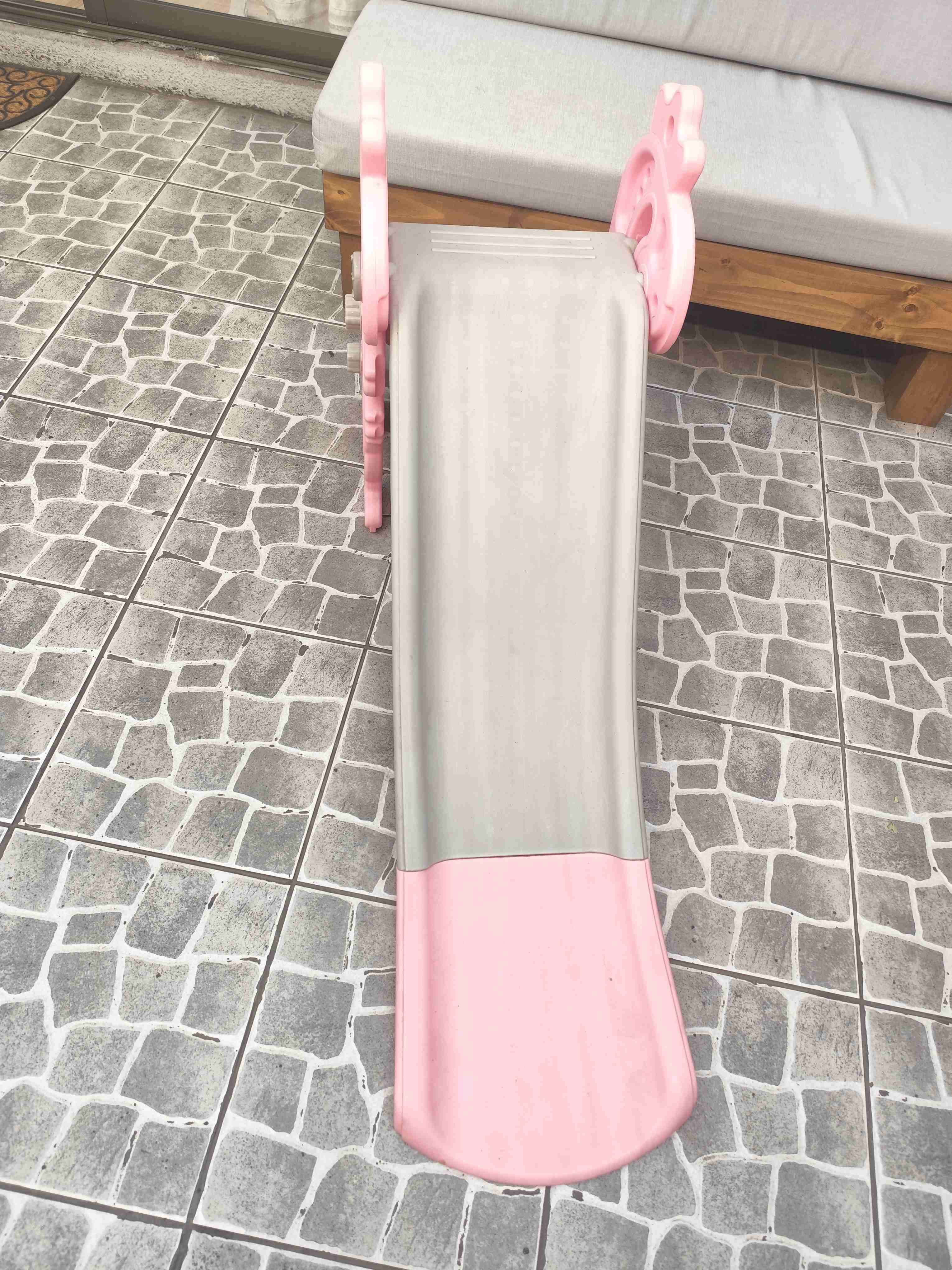 Resbalín color rosa y gris, perfecto para jardín o interior. En buen estado, ideal para entretener a los niños.