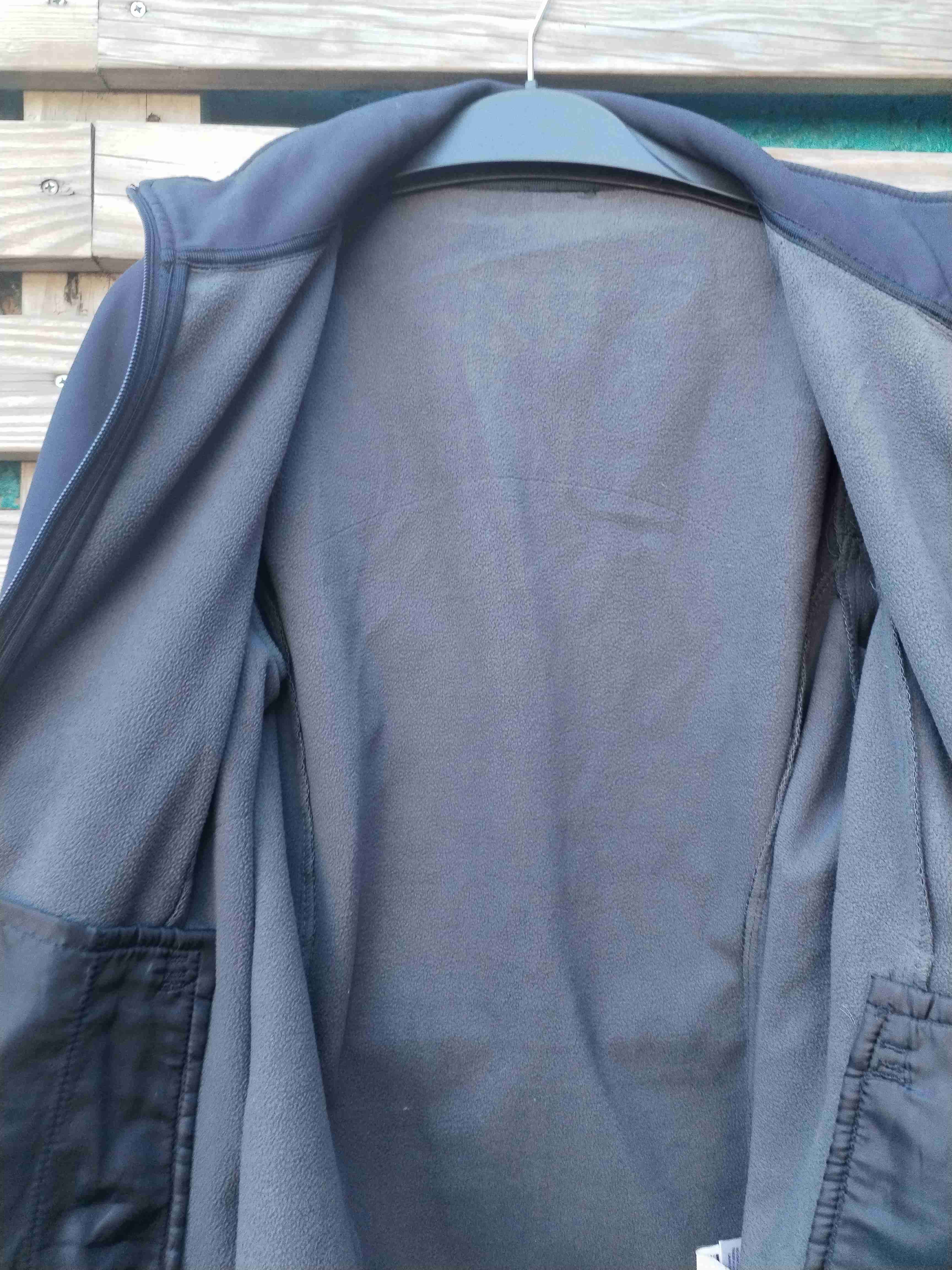 Chaqueta negra ideal para días frescos, con cierre completo y bolsillos. En buen estado general, perfecta para actividades al aire libre.