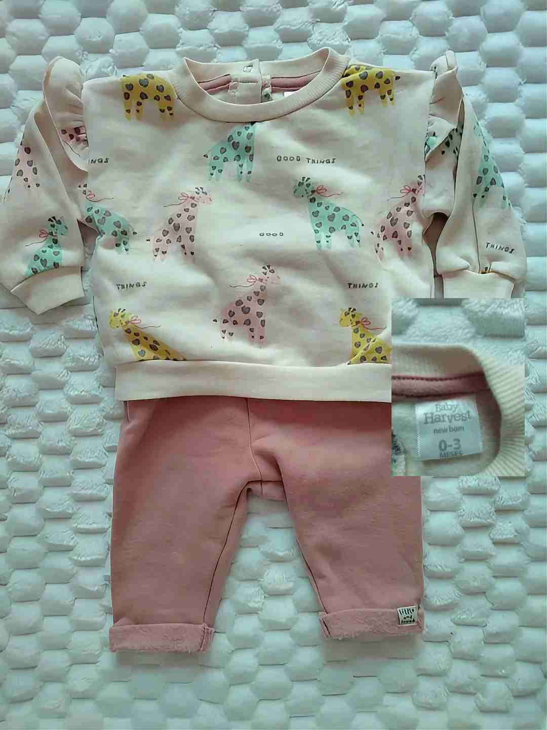 Conjunto de bebé con diseño de jirafas. Suave y cómodo, ideal para 0-3 meses. En excelente estado.