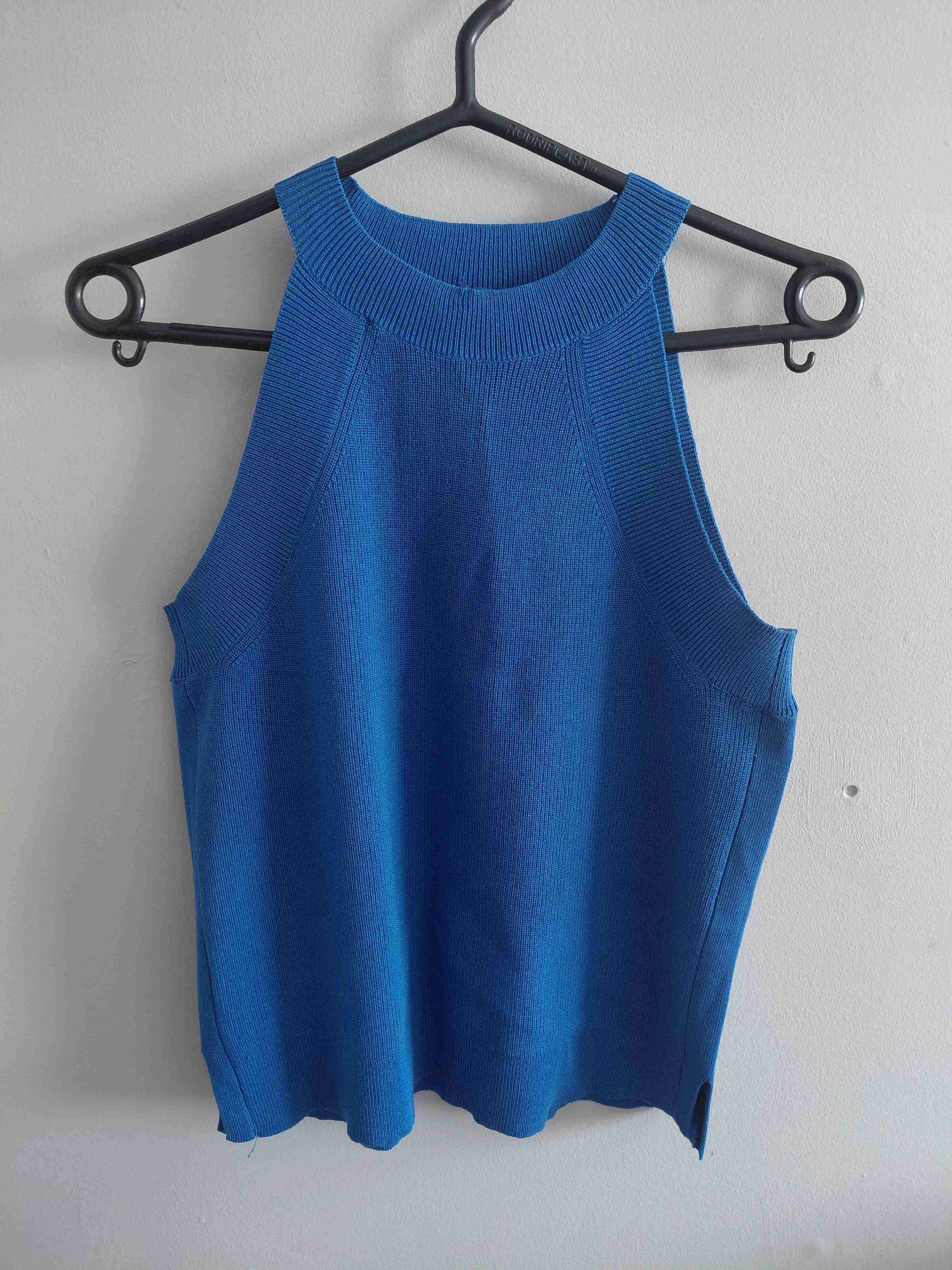 Polera sin mangas de color azul vibrante, ideal para días calurosos. En buen estado general.