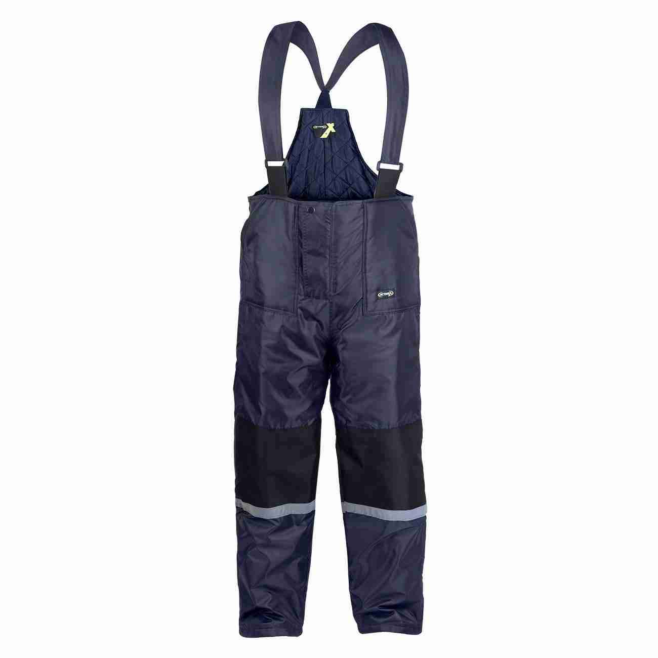 Pantalón de trabajo impermeable de color azul con tirantes ajustables. Ideal para trabajo en exteriores. Se encuentra en buenas condiciones. Talla M