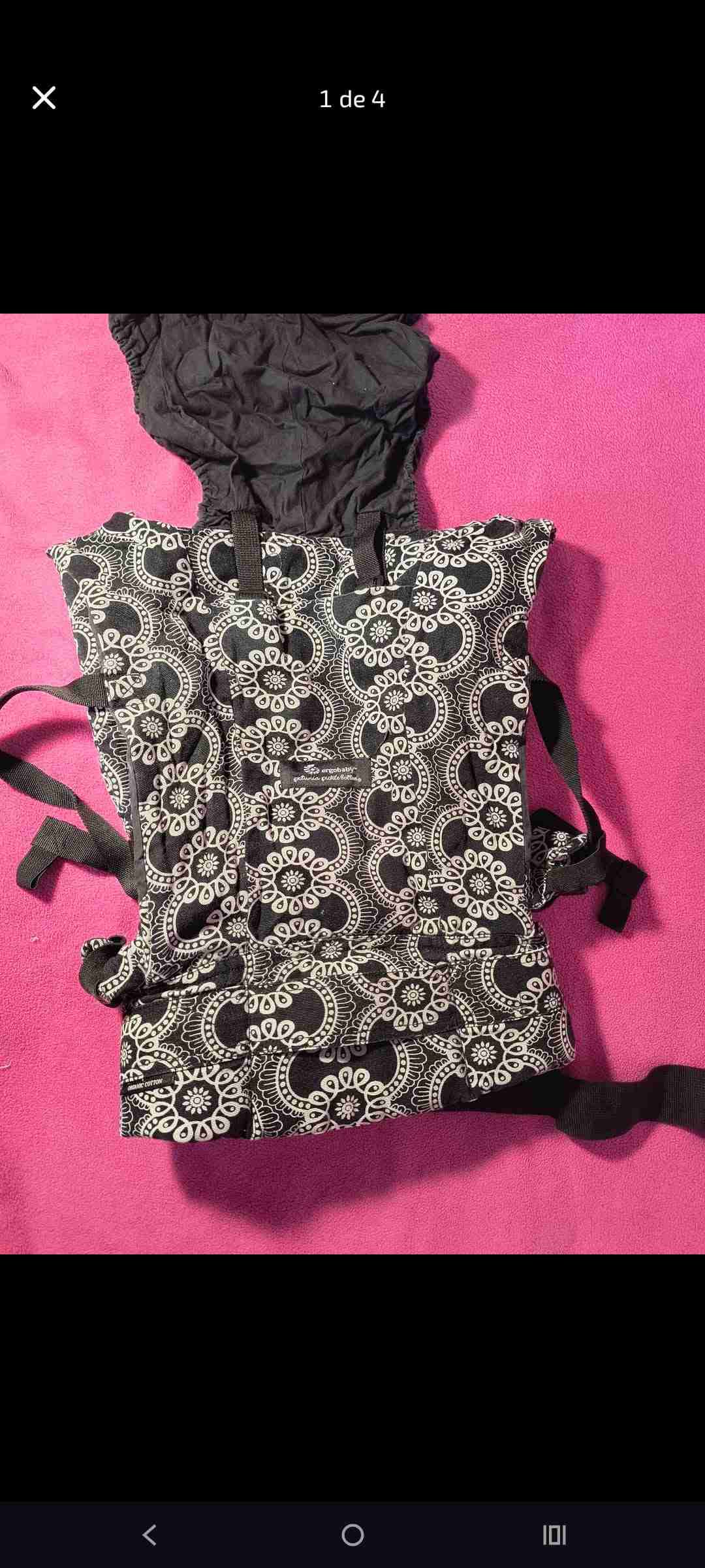 Portabebé ergonómico con diseño estampado en buen estado. Ideal para paseos cómodos con tu bebé. Está en buen estado sin detalles