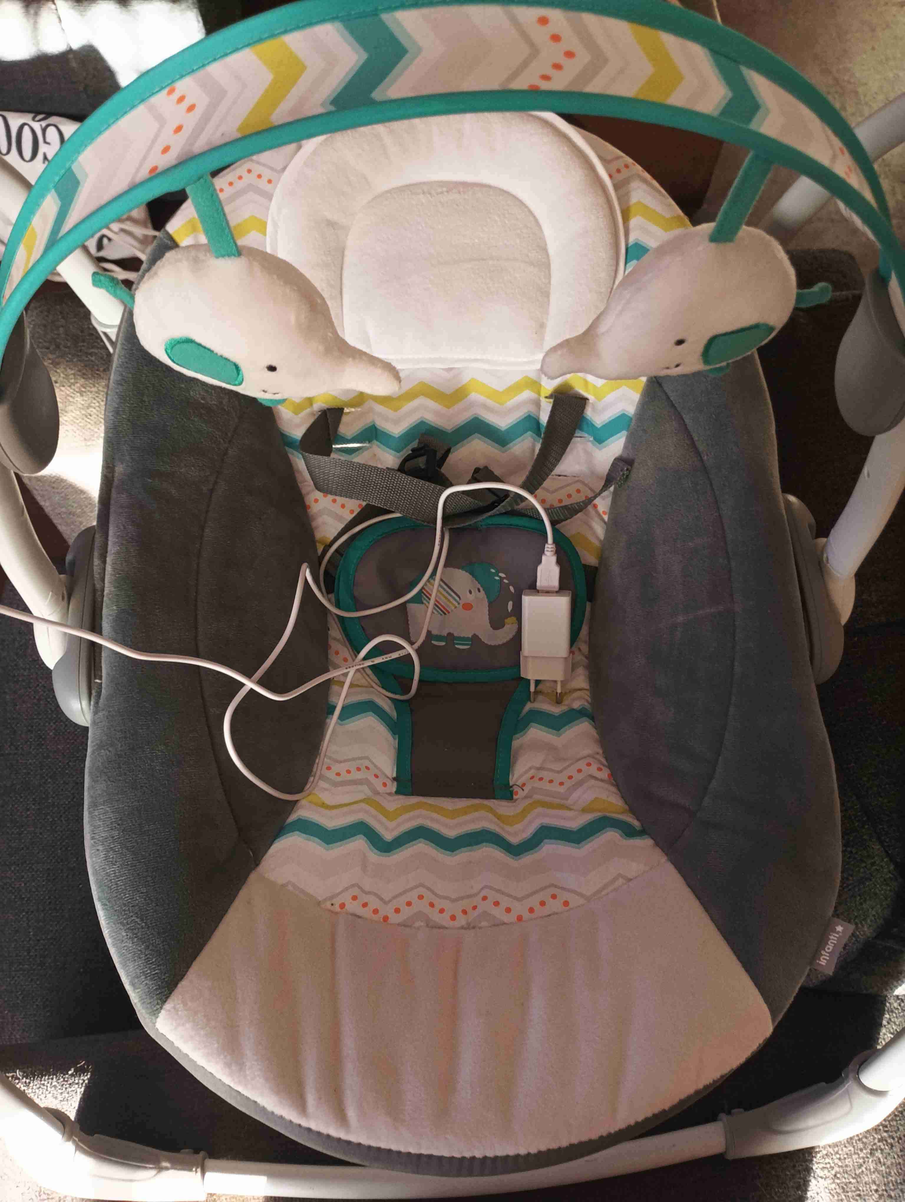 Cómoda silla mecedora con diseño colorido y suaves juguetes colgantes. Ideal para entretener al bebé con seguridad. Cuenta con diferentes melodías Sonidos de naturaleza como el aire el agua sonando para que el bebé se relaje Cuenta con diferentes velocidades de movimiento Viene con su cargador