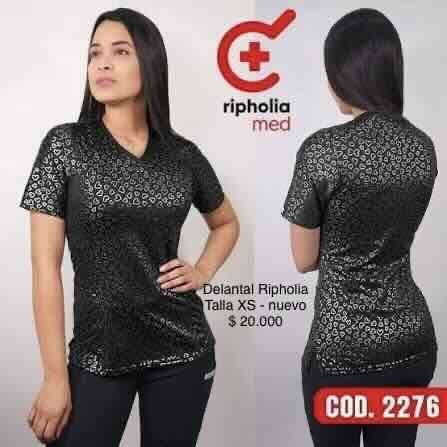Polera negra con estampado, ideal para uso médico. Nuevo con etiqueta. Talla XS