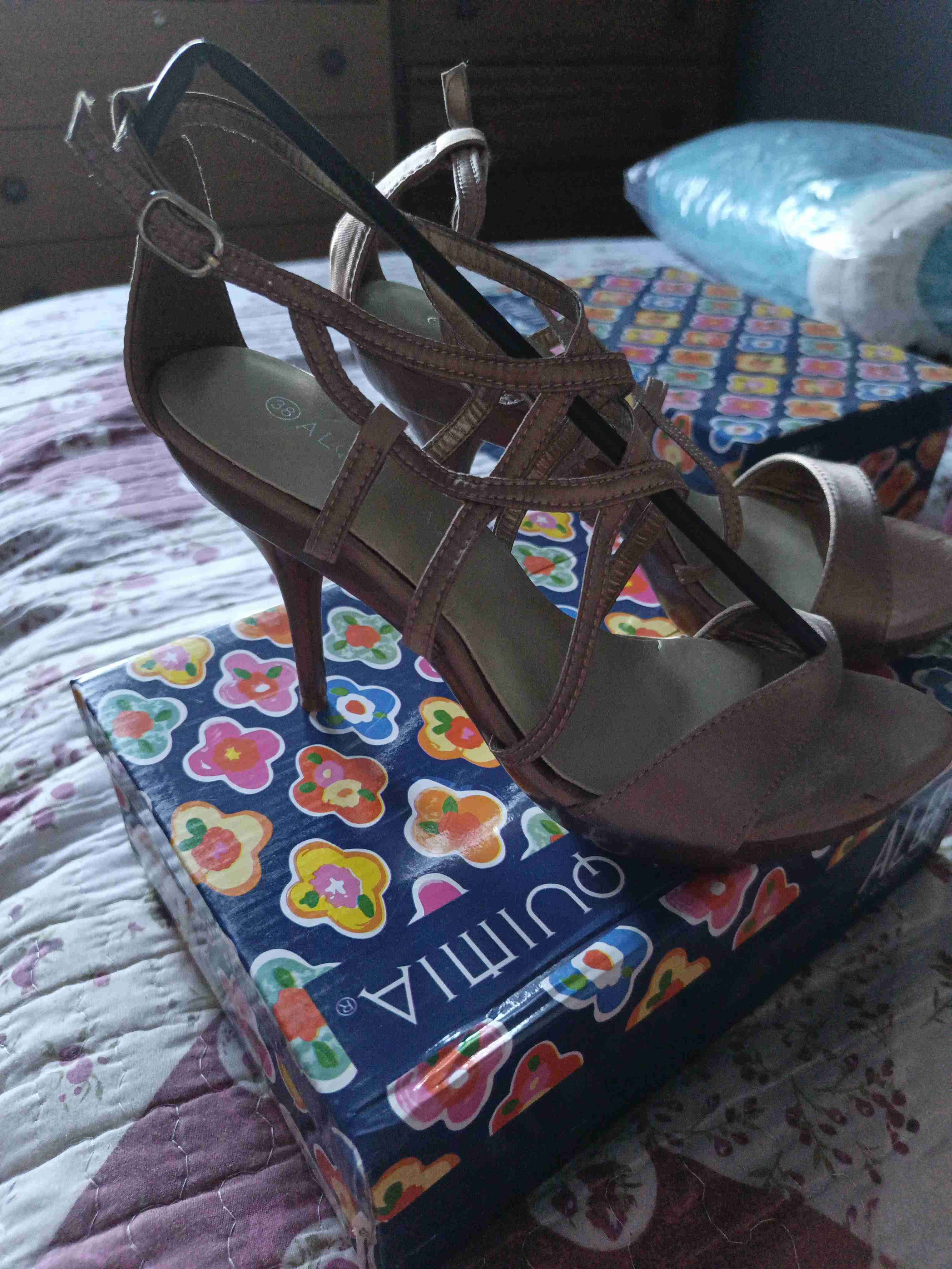 Elegantes sandalias de taco alto en color café, perfectas para ocasiones especiales. En buen estado con leve uso.