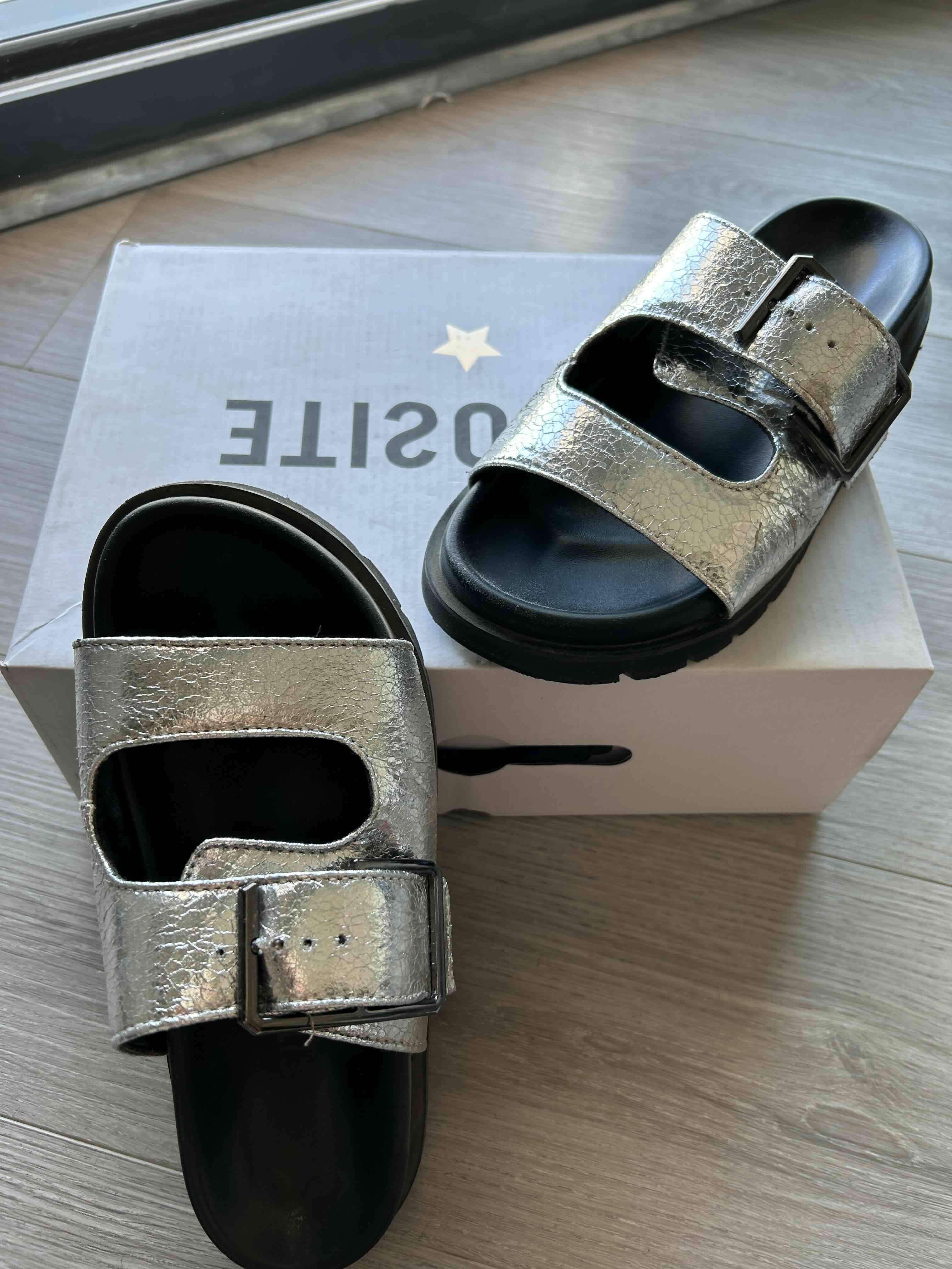 Sandalias con hebillas, estilo moderno y cómodo. Buen estado general.