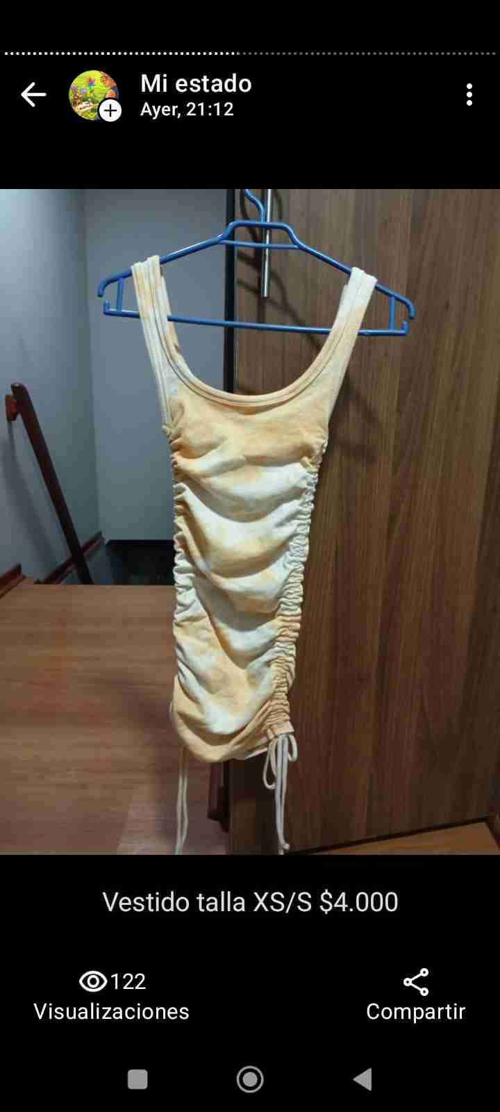 Vestido corto ajustado de color amarillo claro, ideal para el verano. Está en buena condición con un diseño fruncido moderno.