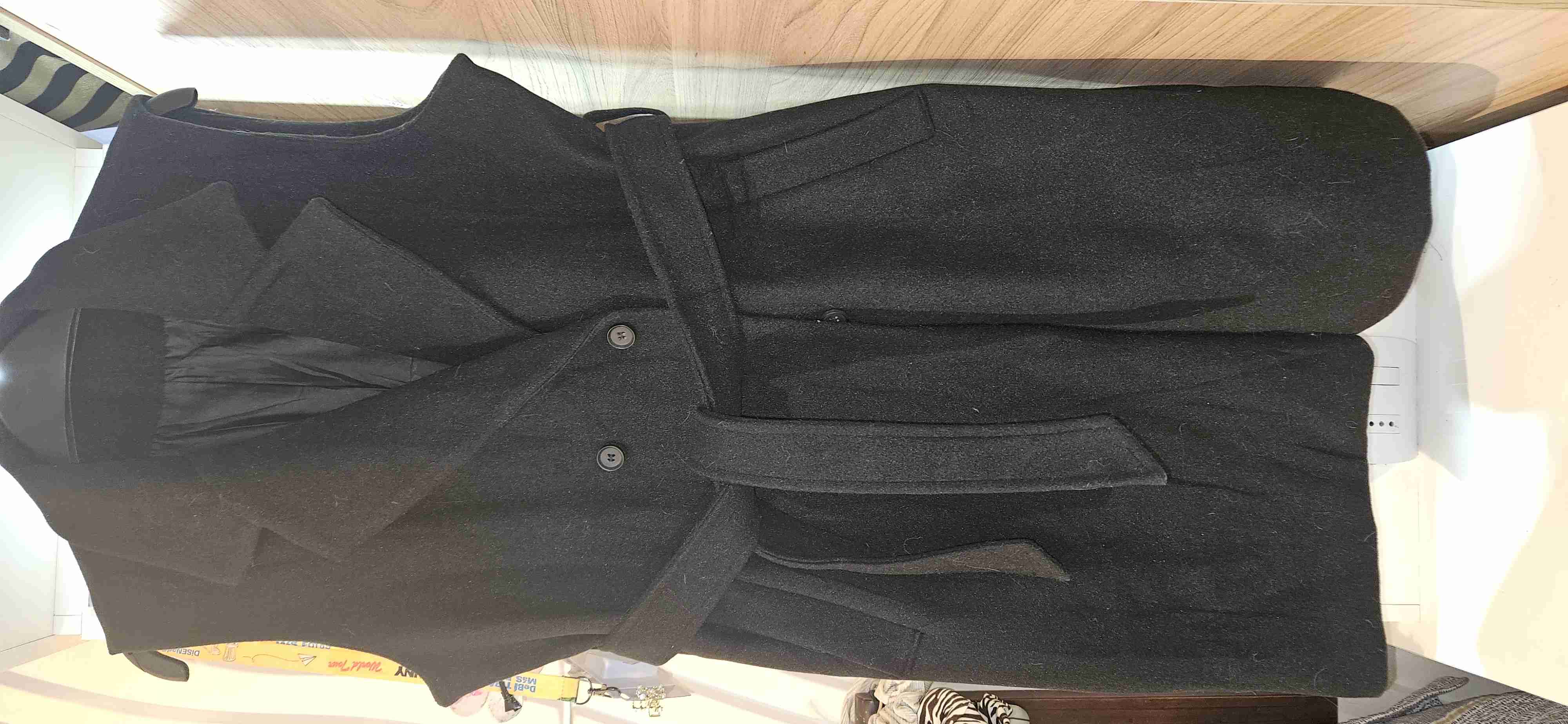 Abrigo largo negro sin mangas, ideal para el invierno. En buen estado, con cinturón integrado para un ajuste elegante.sin uso.