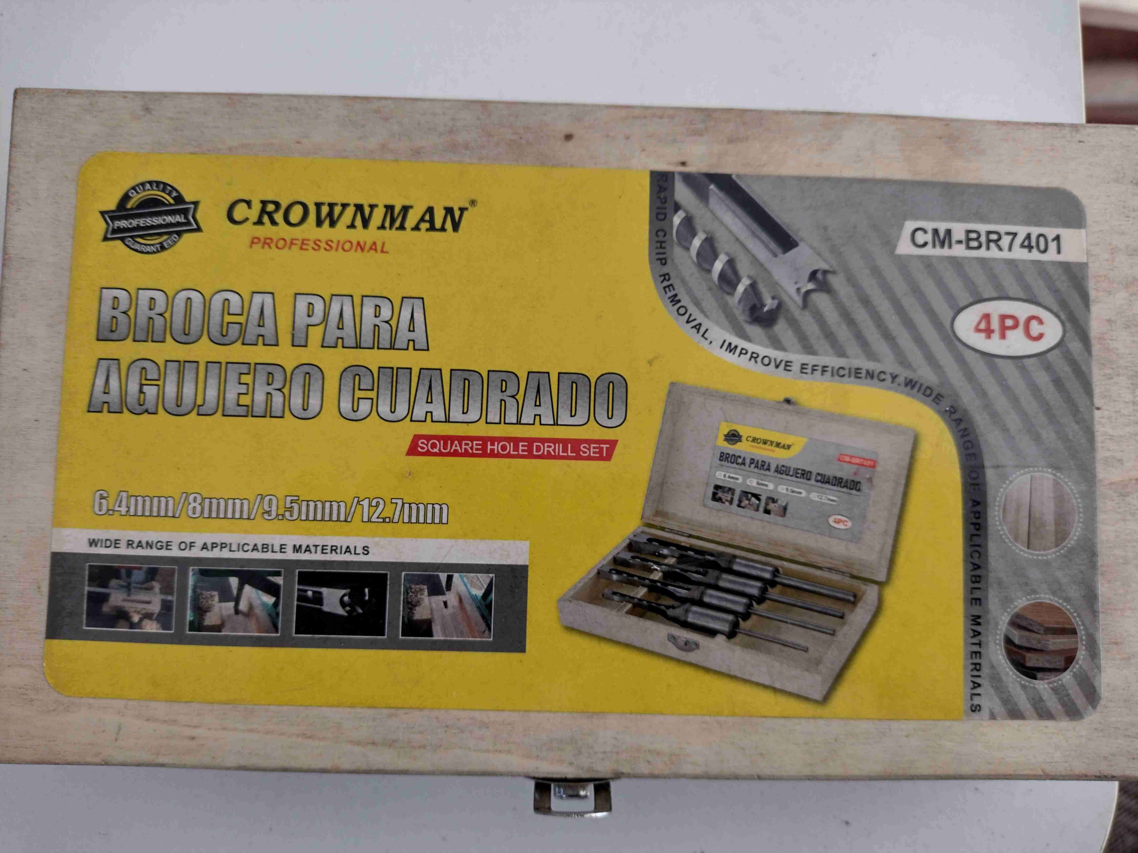 Set de brocas Crownman para hacer agujeros cuadrados, incluye 4 piezas. Ideal para trabajos de carpintería.