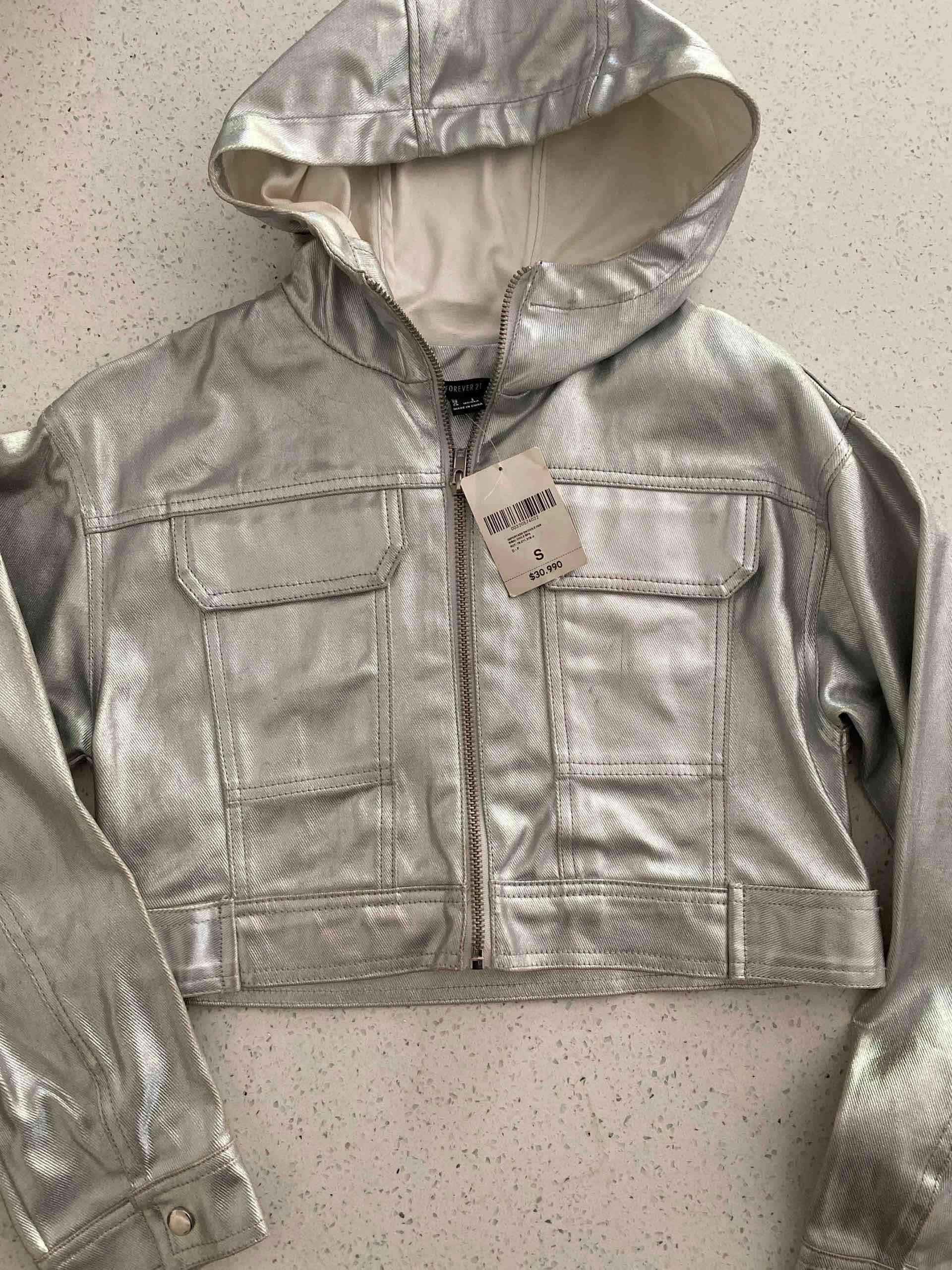 Chaqueta plateada con capucha, ideal para un look moderno. Nueva con etiqueta. Estilo gastada talla S