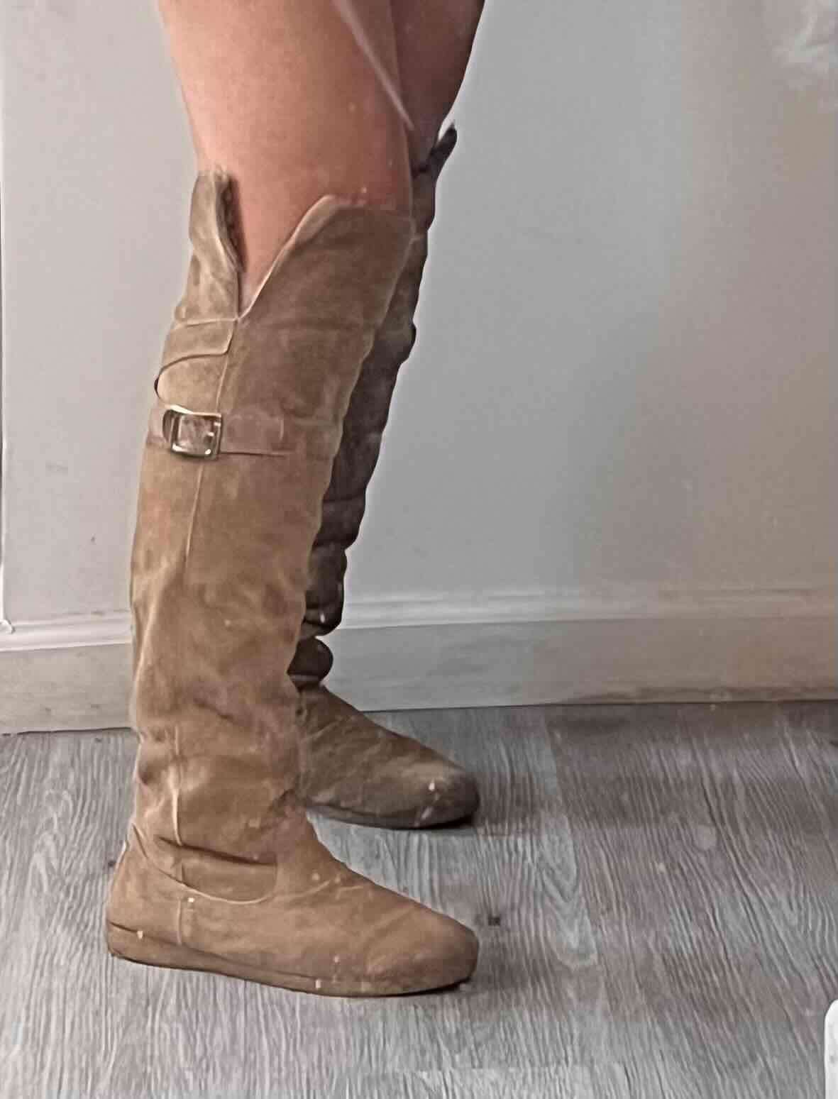 Botas musleras beige de gamuza