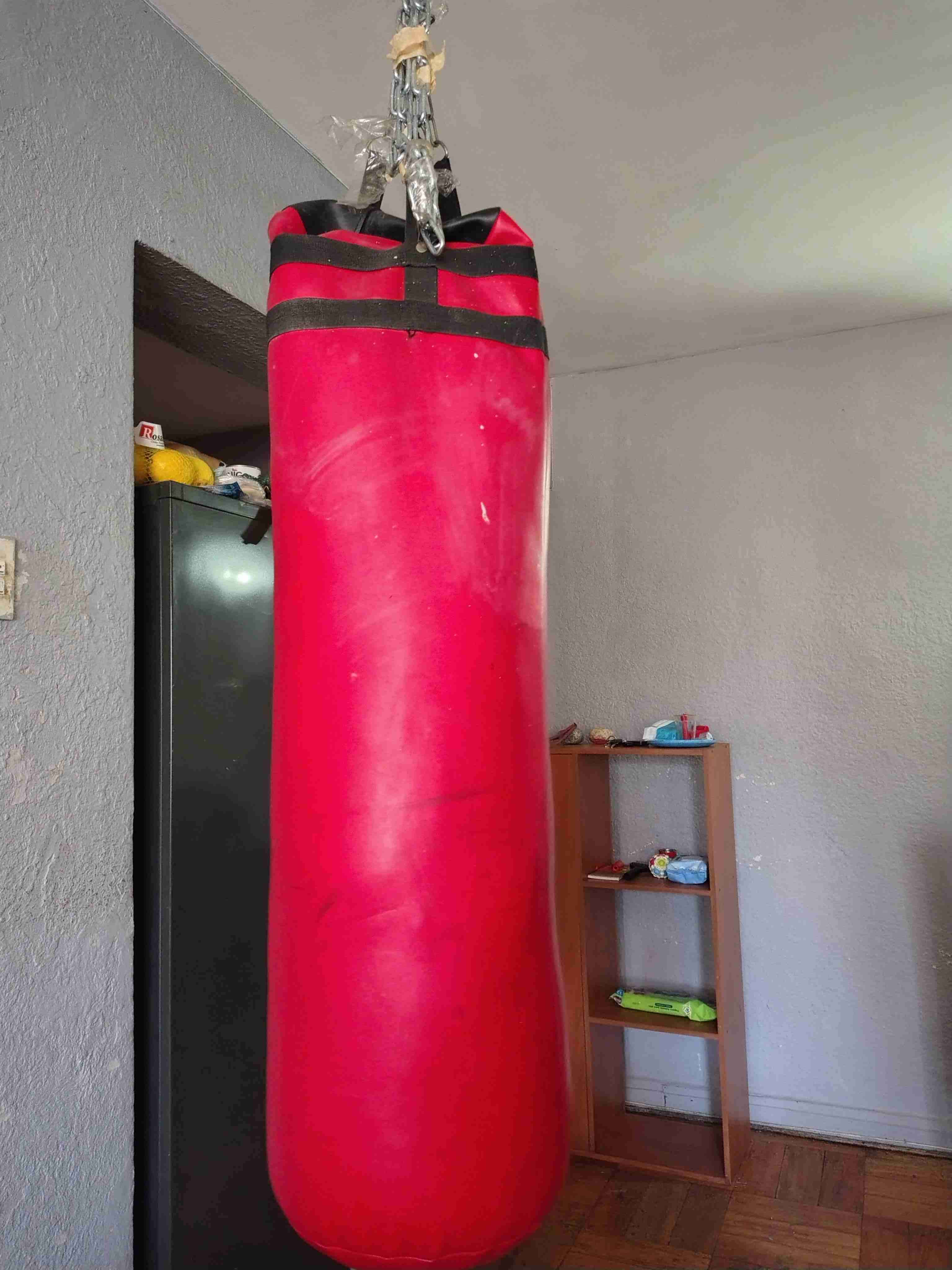 Saco de boxeo en muy buen estado, ideal para entrenamiento en casa. Con cadenas para colgar.