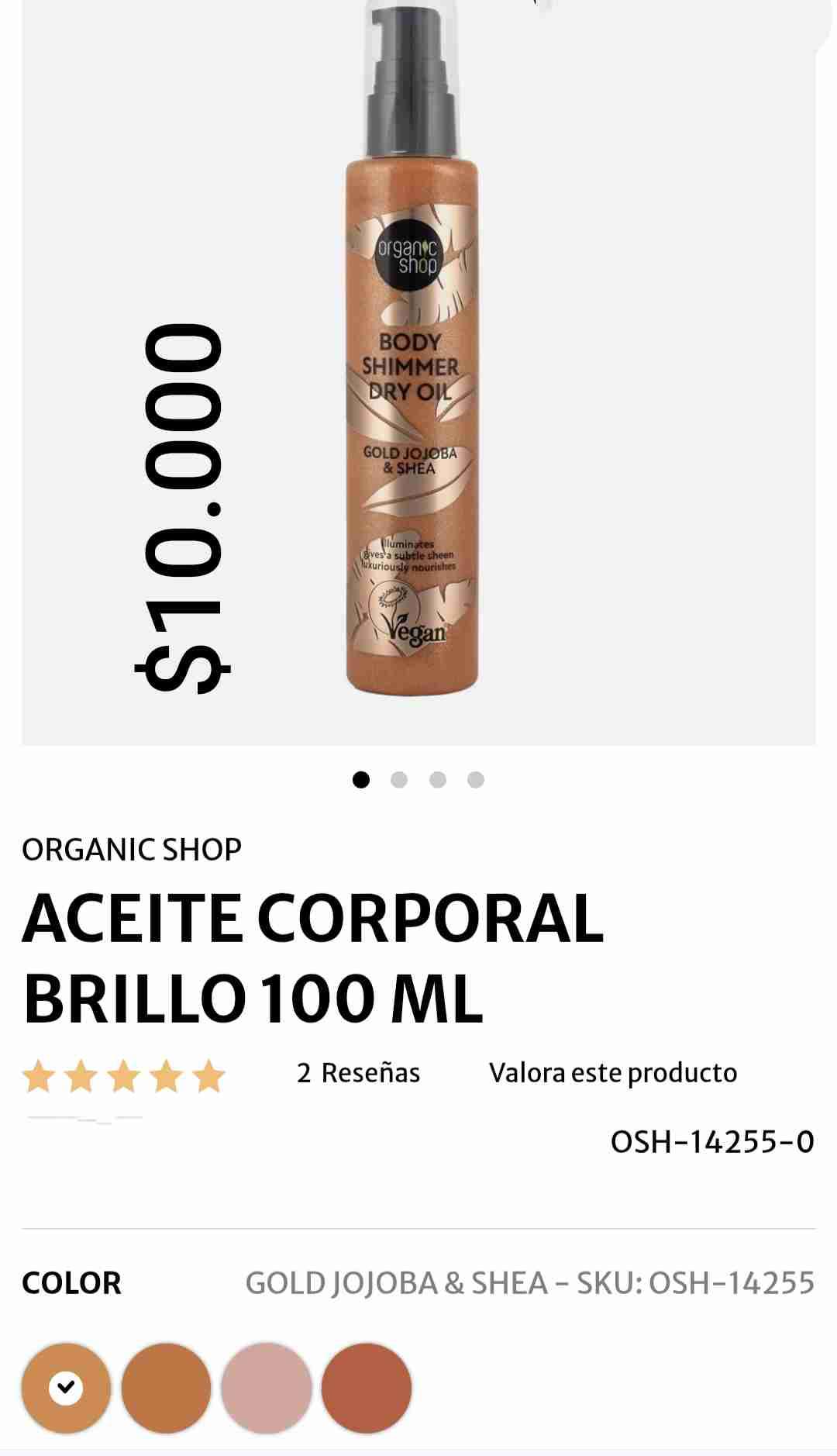 Aceite corporal iluminador con jojoba dorada y karité. Deja un brillo sutil y nutre la piel. Ideal para una apariencia radiante.