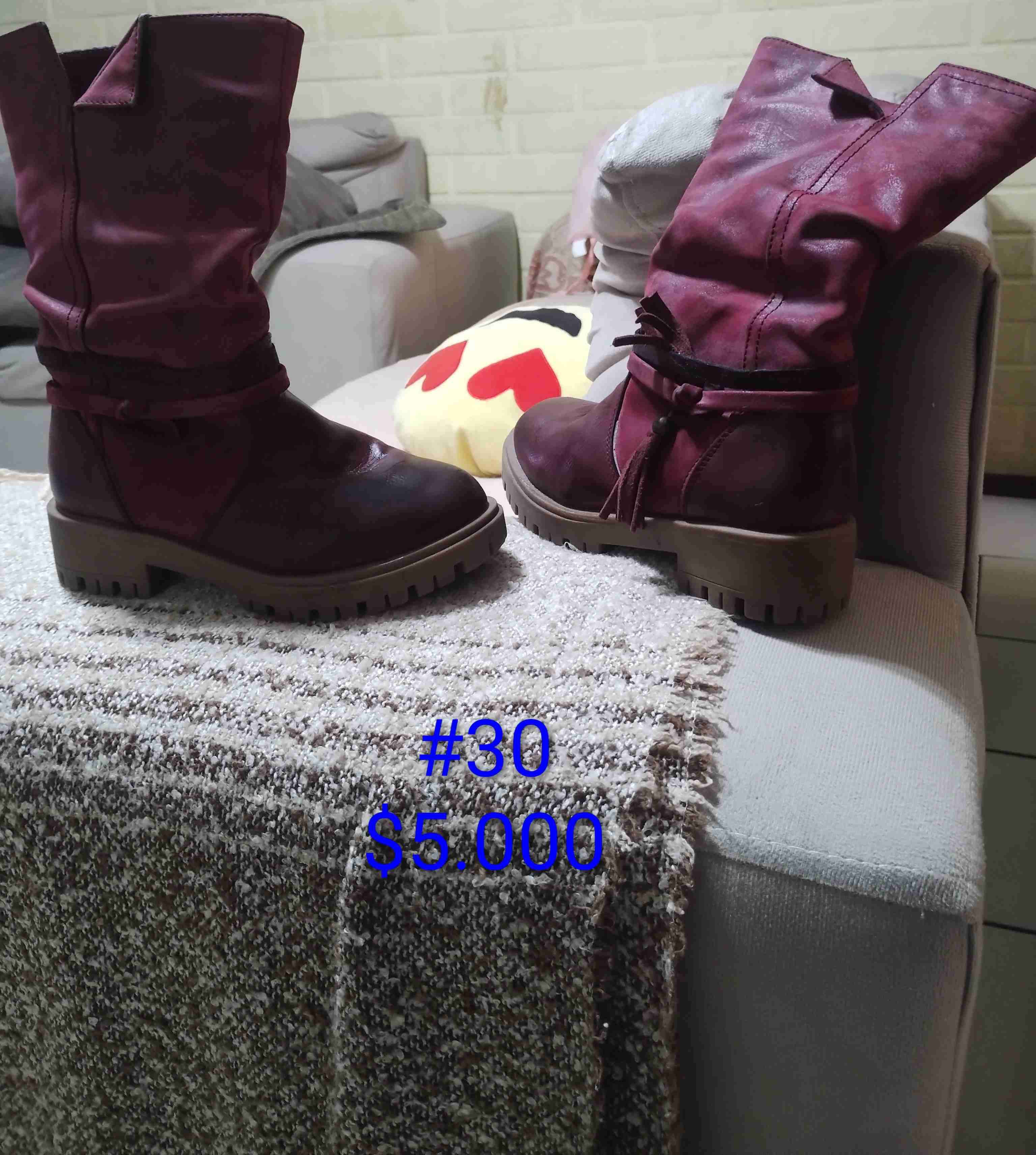 Botas de cuero en color burdeos con suela robusta. En buen estado, ideales para el invierno.