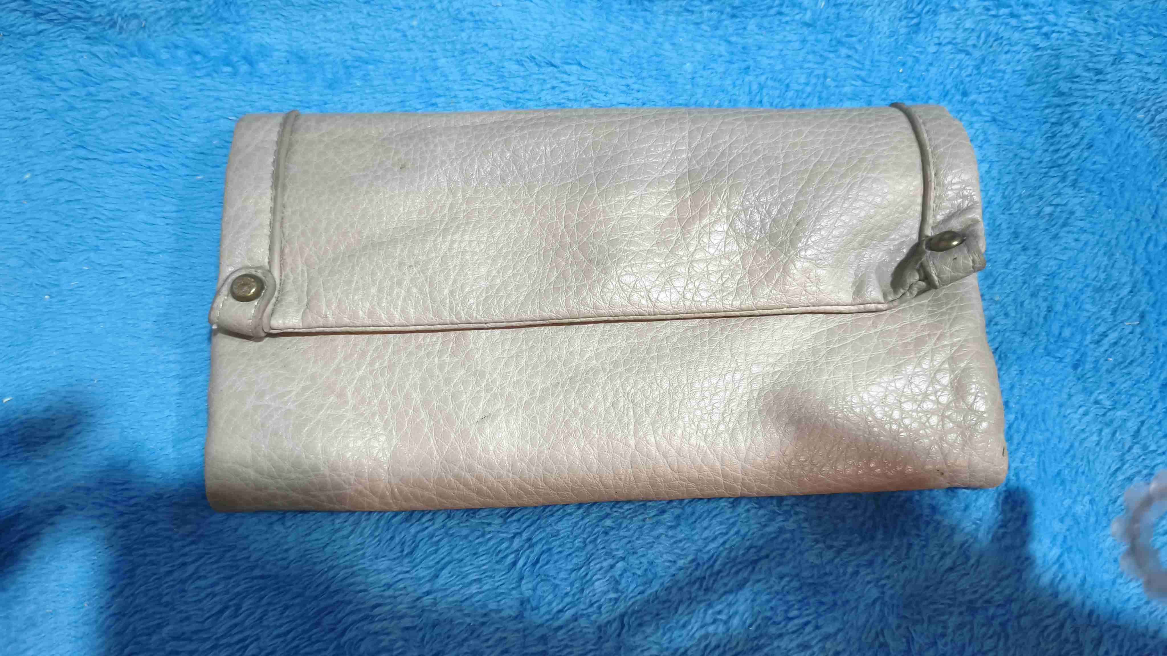 Cartera compacta beige, perfecta para el día a día. En buen estado con signos leves de uso.