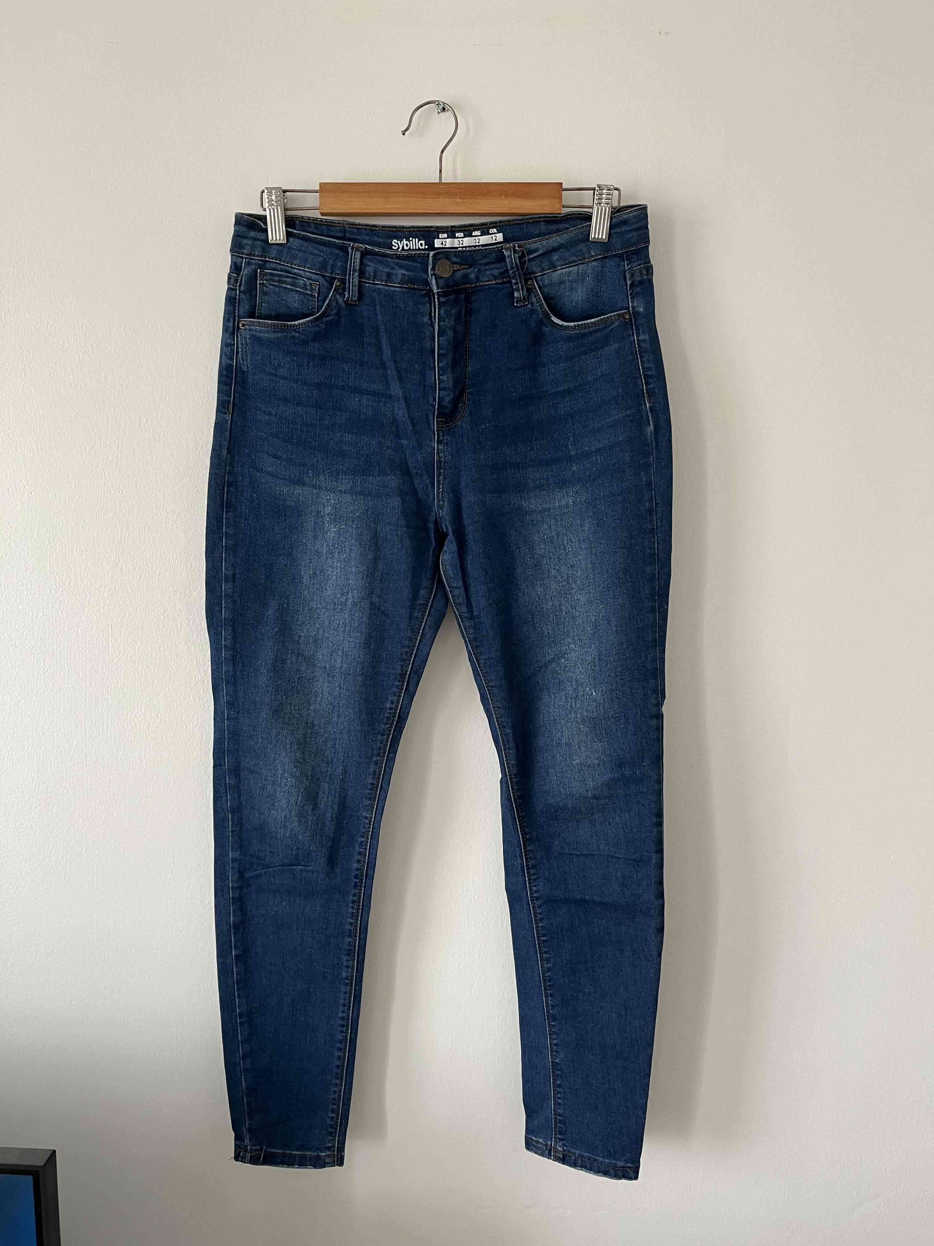 Jeans de mezclilla azul oscuro en buen estado, ideal para uso diario. Tipo skinny.