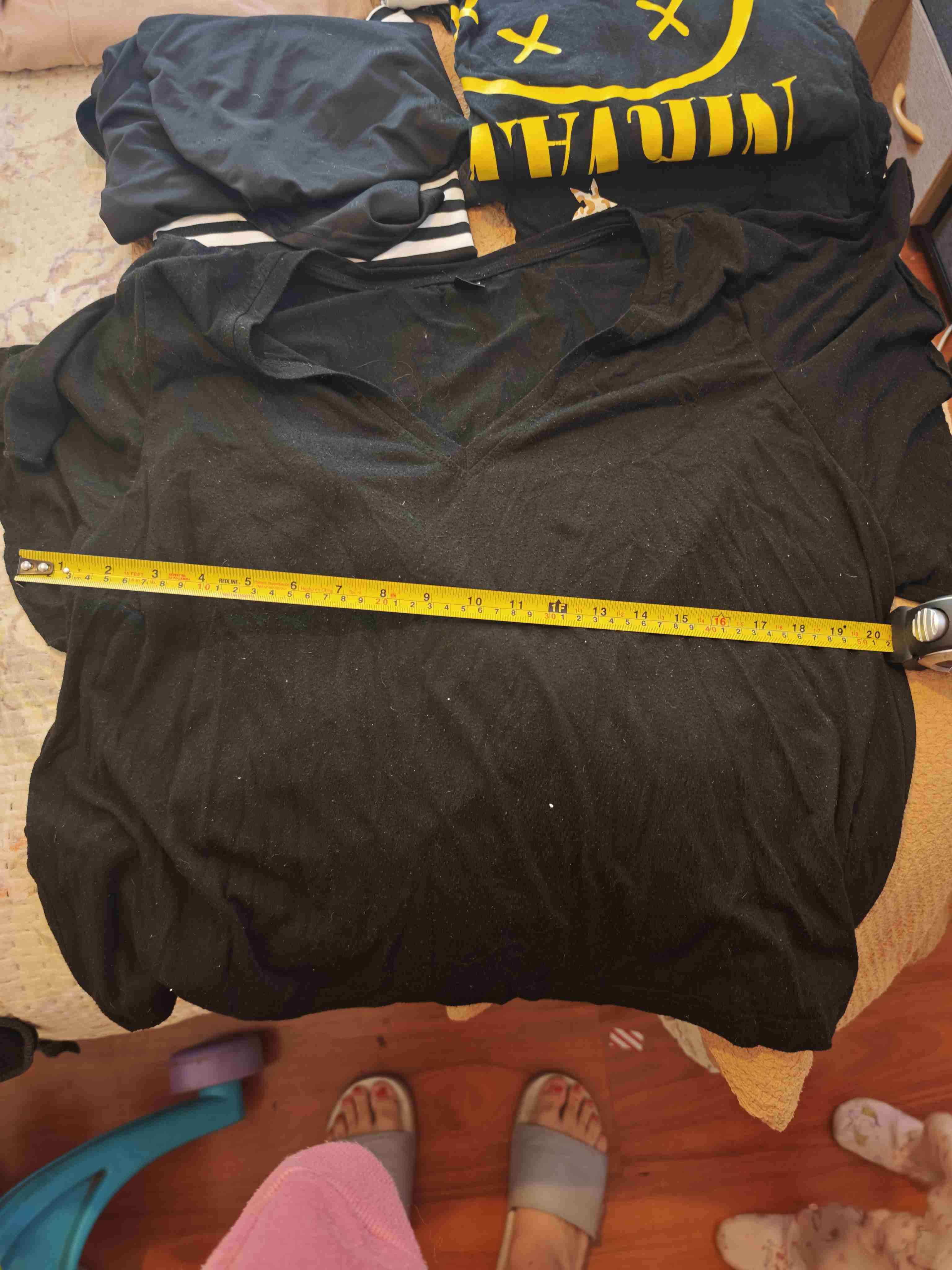 Polera negra básica con cuello en V, ideal para el día a día. Se encuentra en buen estado general, con signos leves de uso.