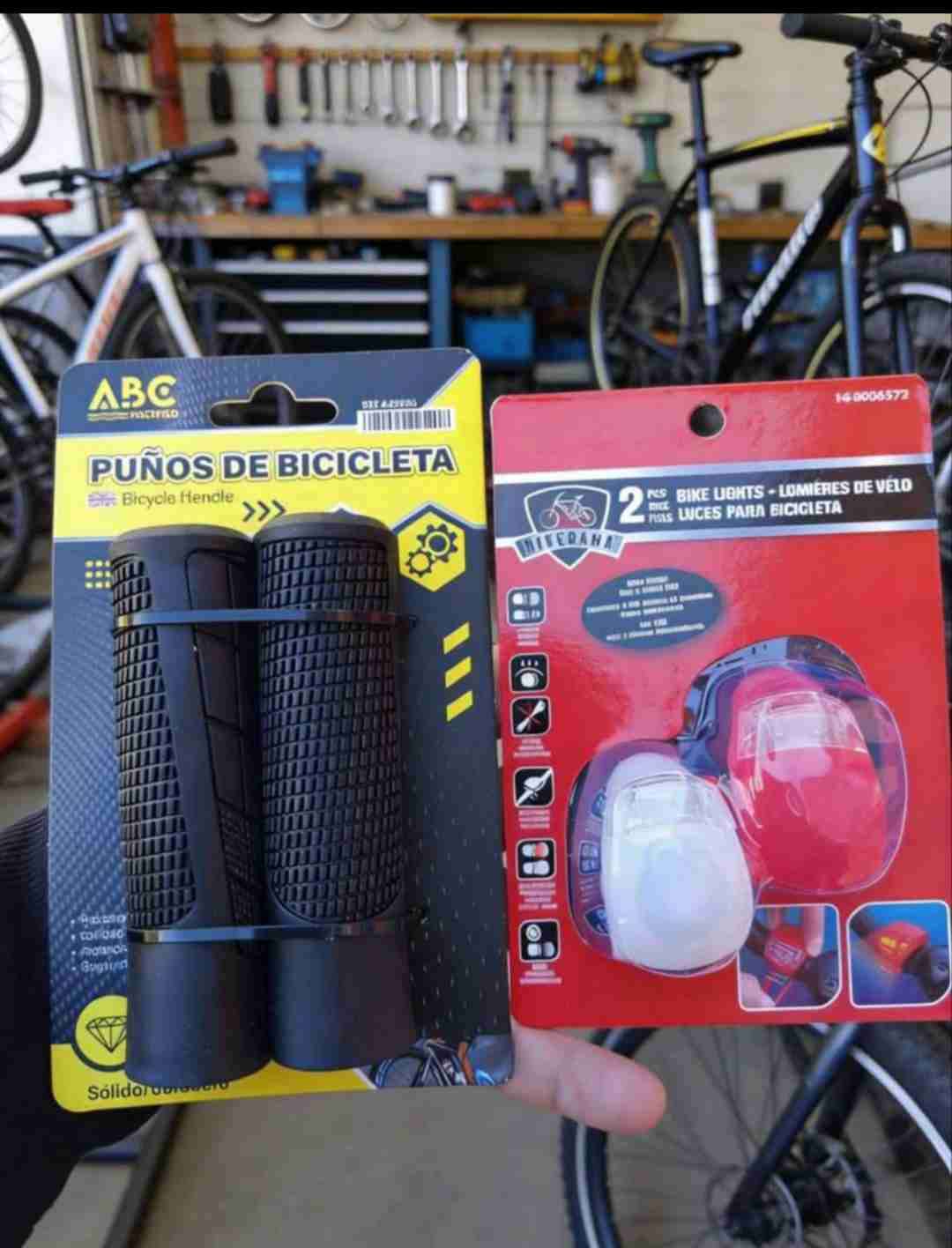 Puños y luces para bicicleta