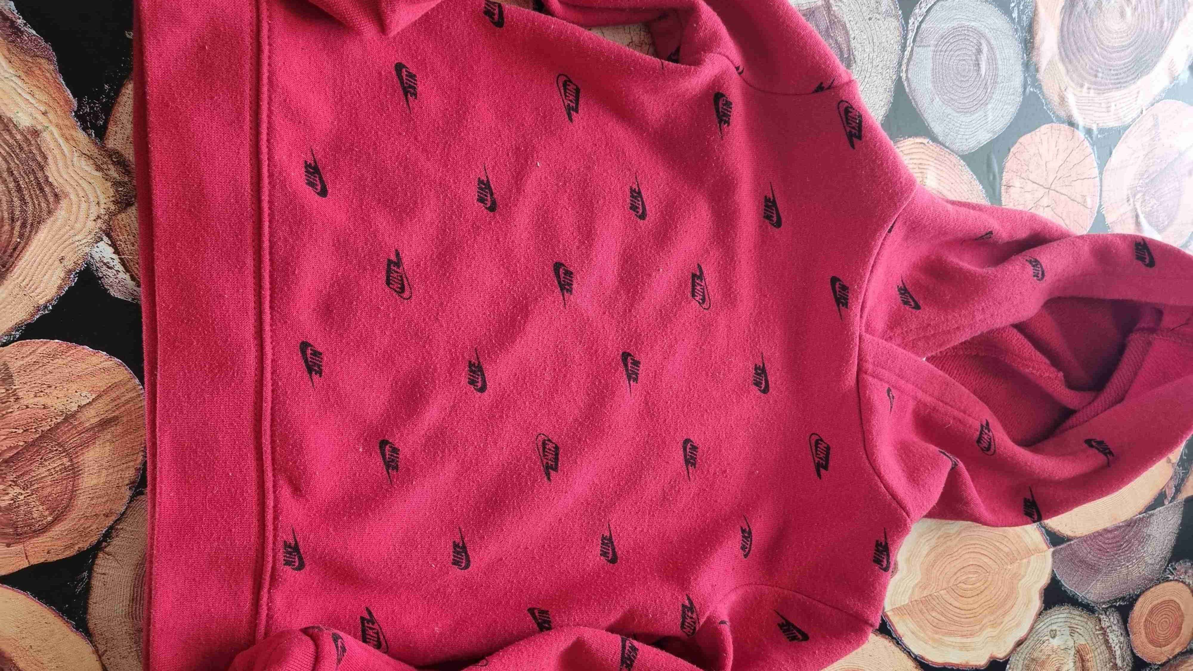 Polerón rojo con capucha y diseño de logos pequeños. Ideal para el uso diario, en buen estado.talla 2nike
