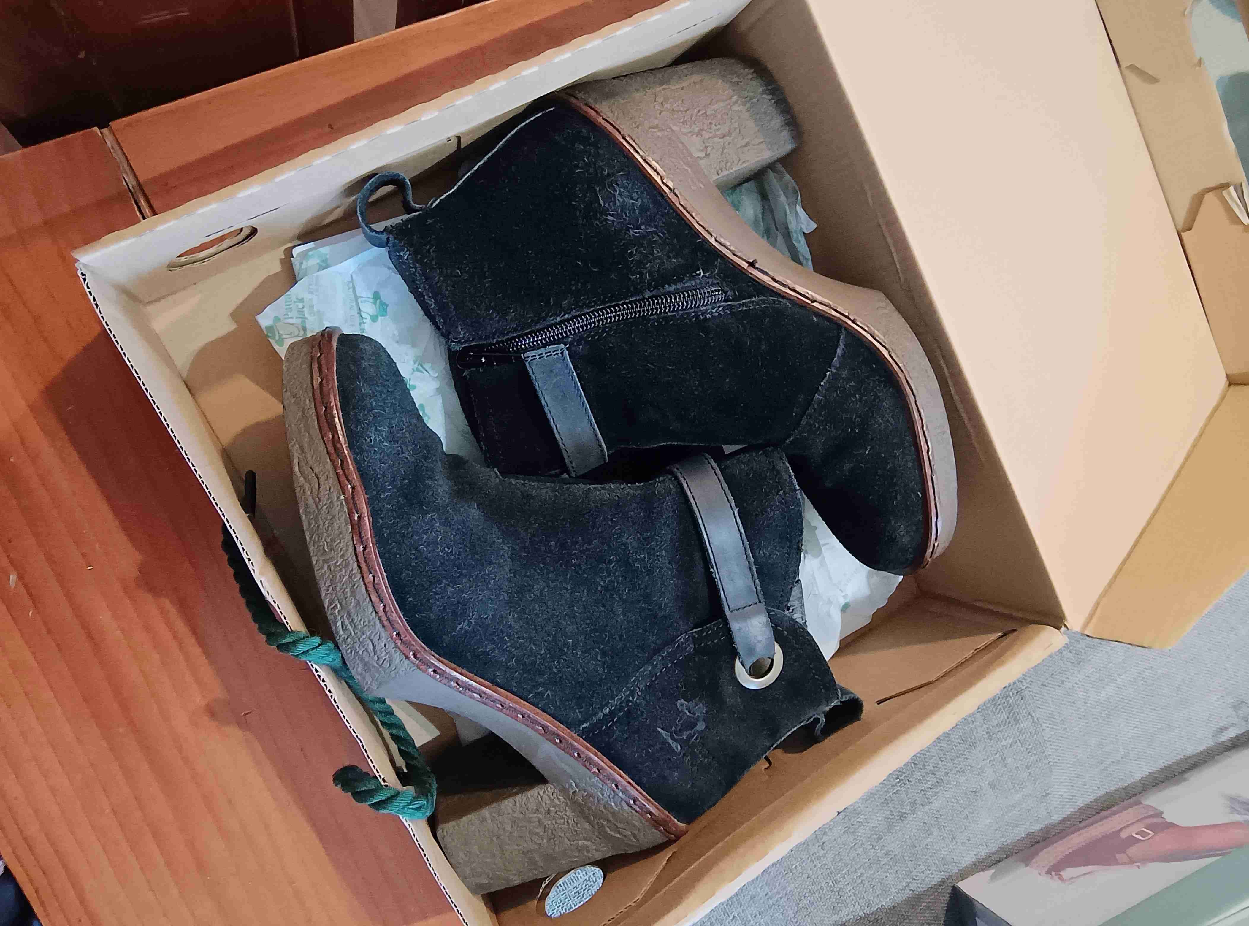 Botines negros de gamuza, ideales para el invierno. En buen estado, con tacón cómodo.