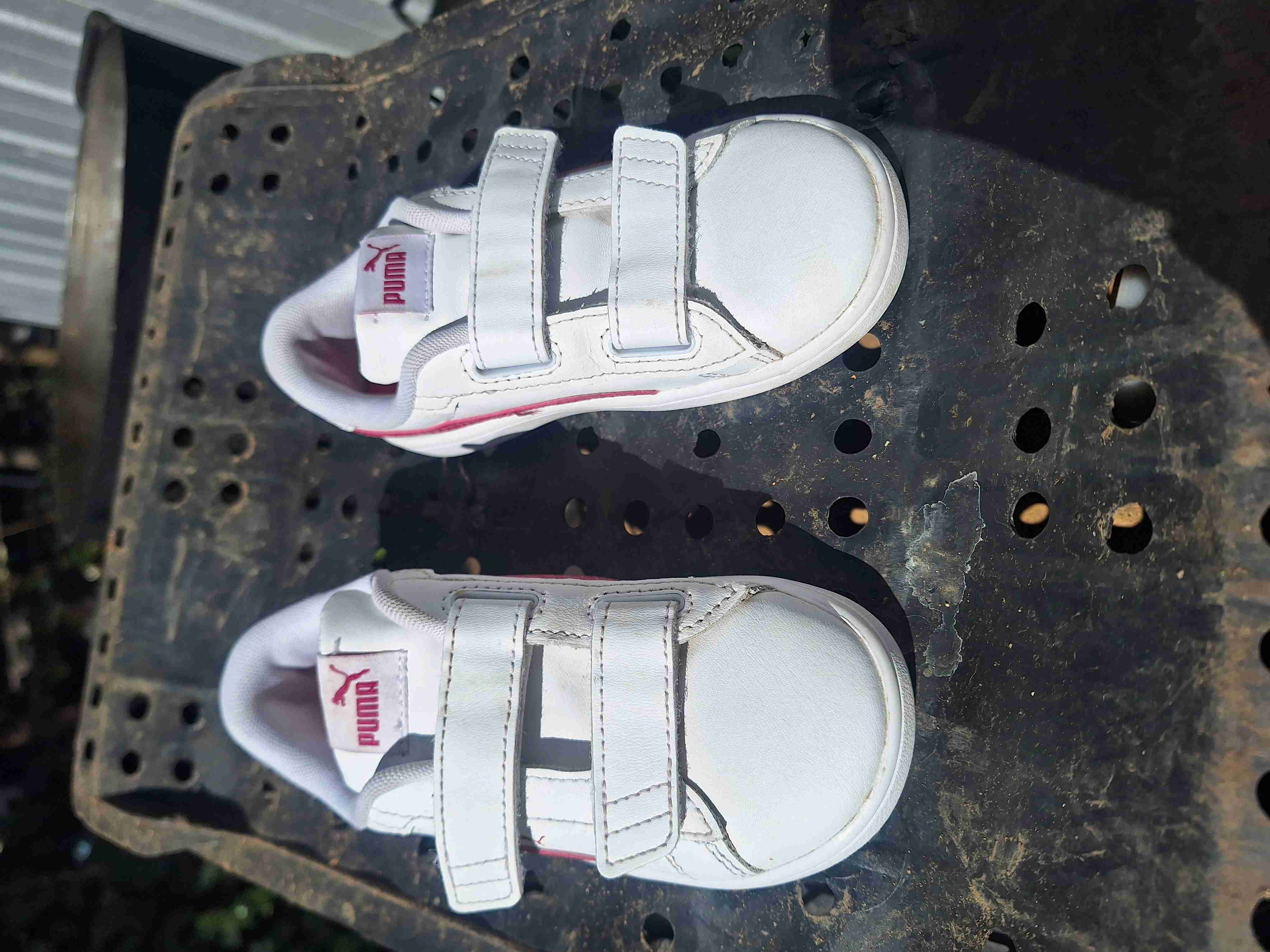 Zapatillas blancas deportivas con cierre de velcro, en buen estado y cómodas para uso diario.