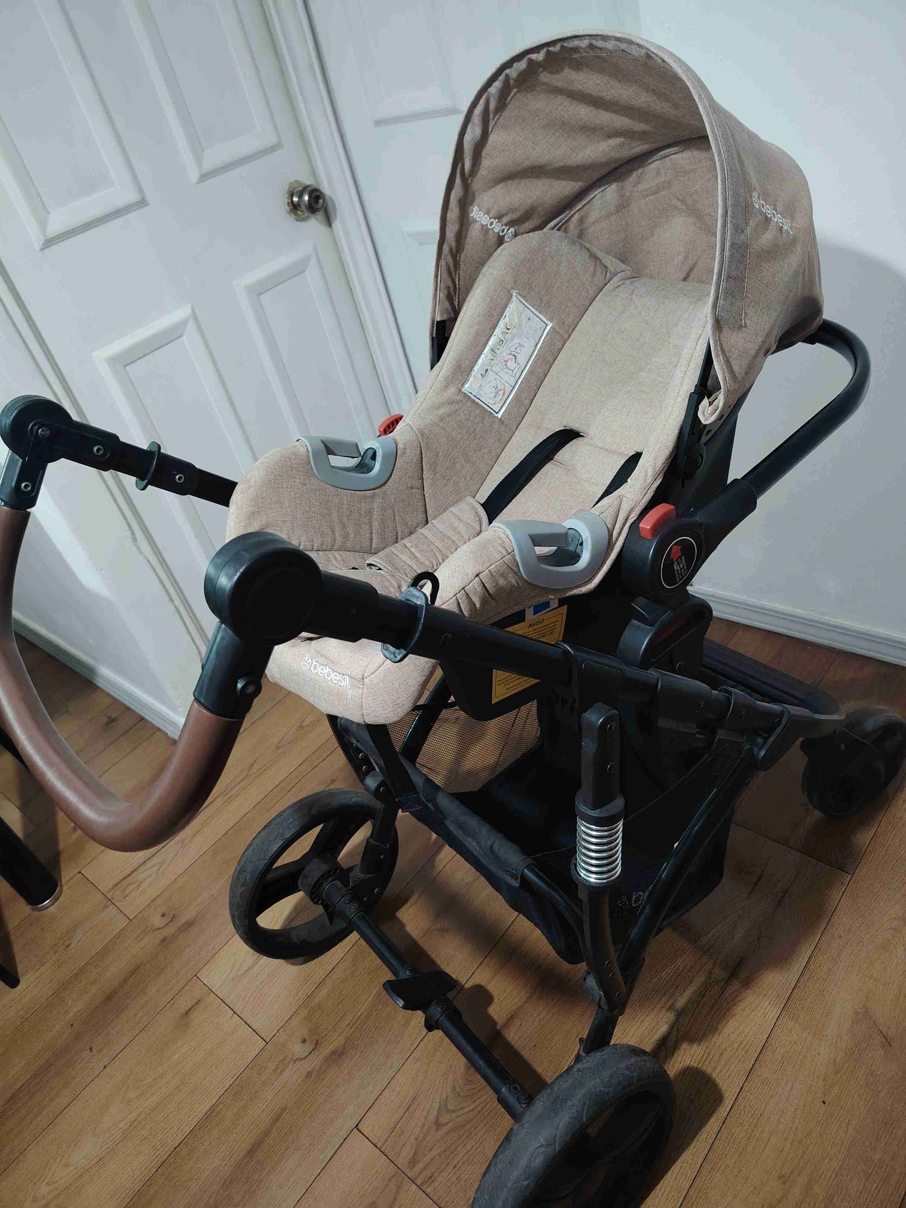 Coche para bebé en buen estado, color beige. Ideal para paseos cómodos, incluye moises.