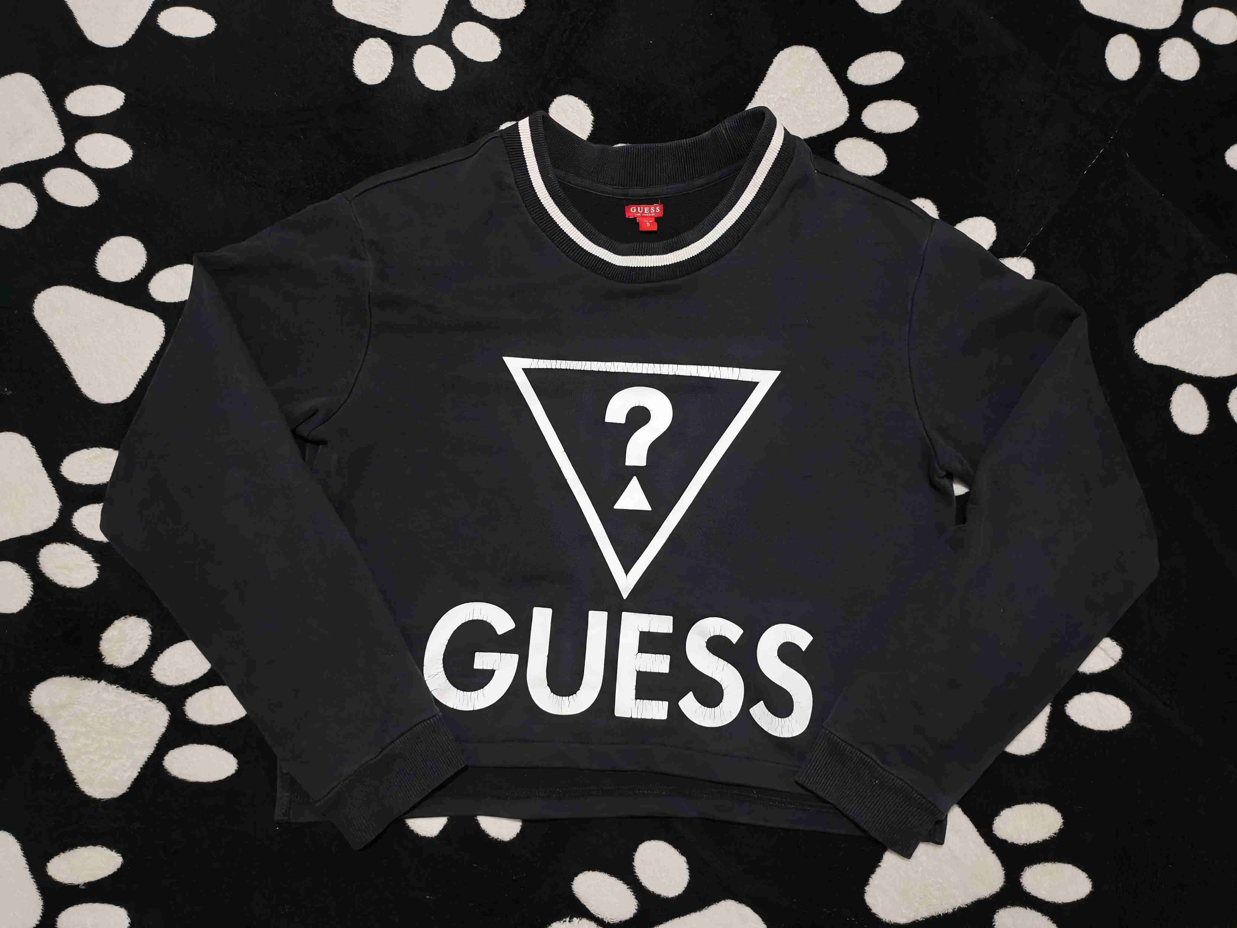 Polerón negro Guess con logo frontal, ideal para días frescos. Buen estado general.