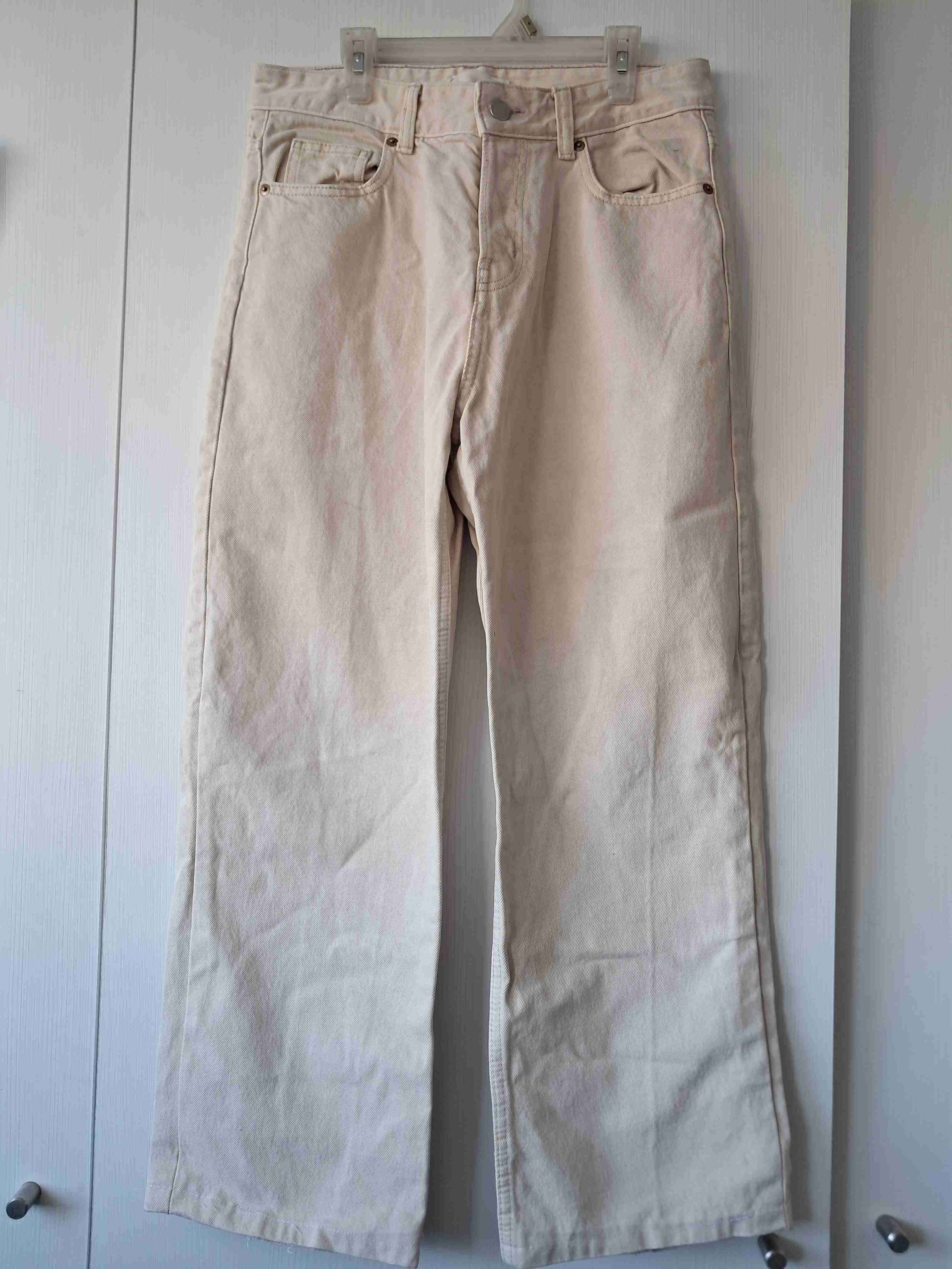 Jeans beige de corte recto, en buen estado. Ideales para combinaciones casuales.