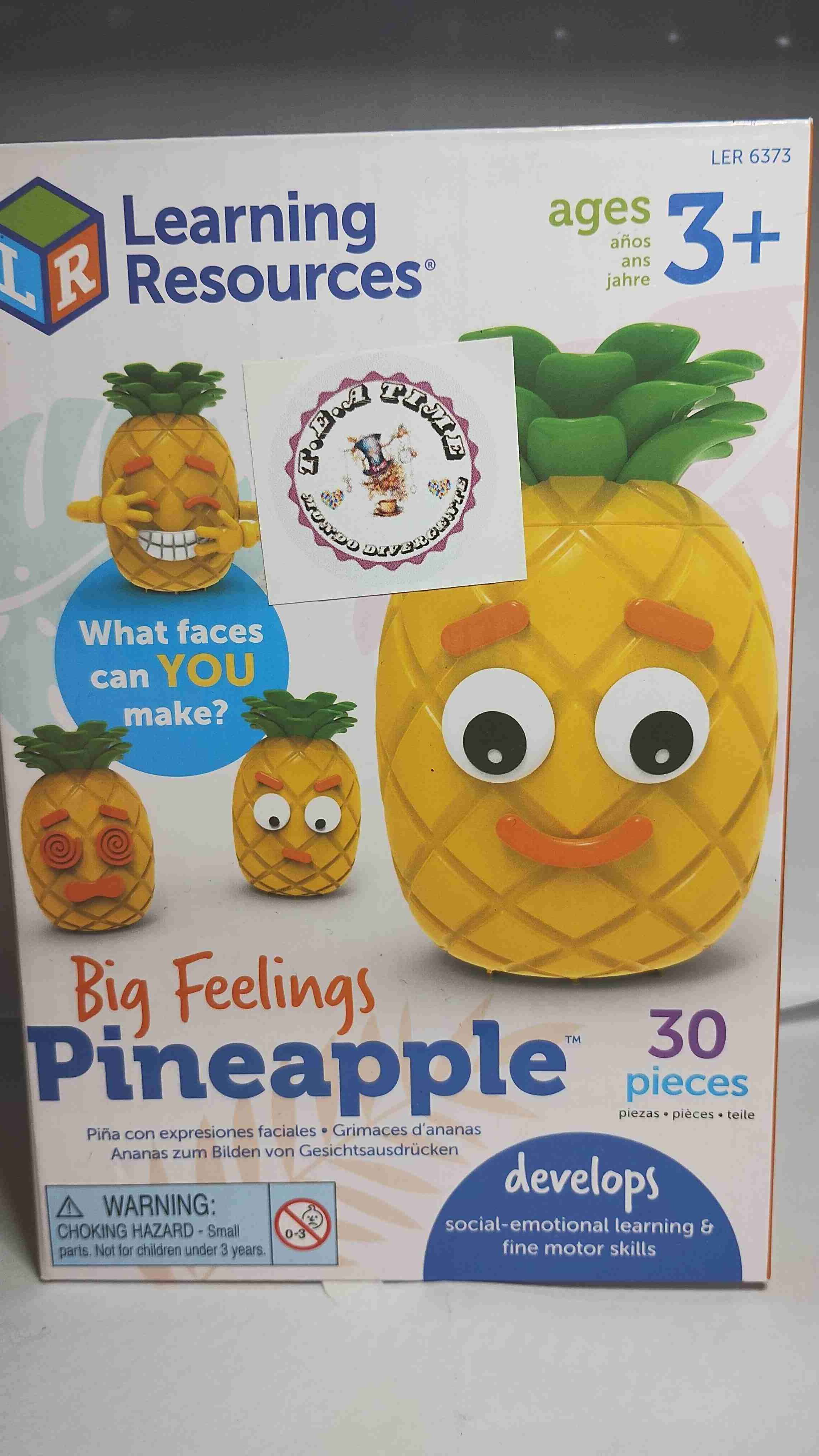 Set educativo con piña de expresiones faciales para desarrollar habilidades emocionales y motoras. Ideal para niños desde 3 años.