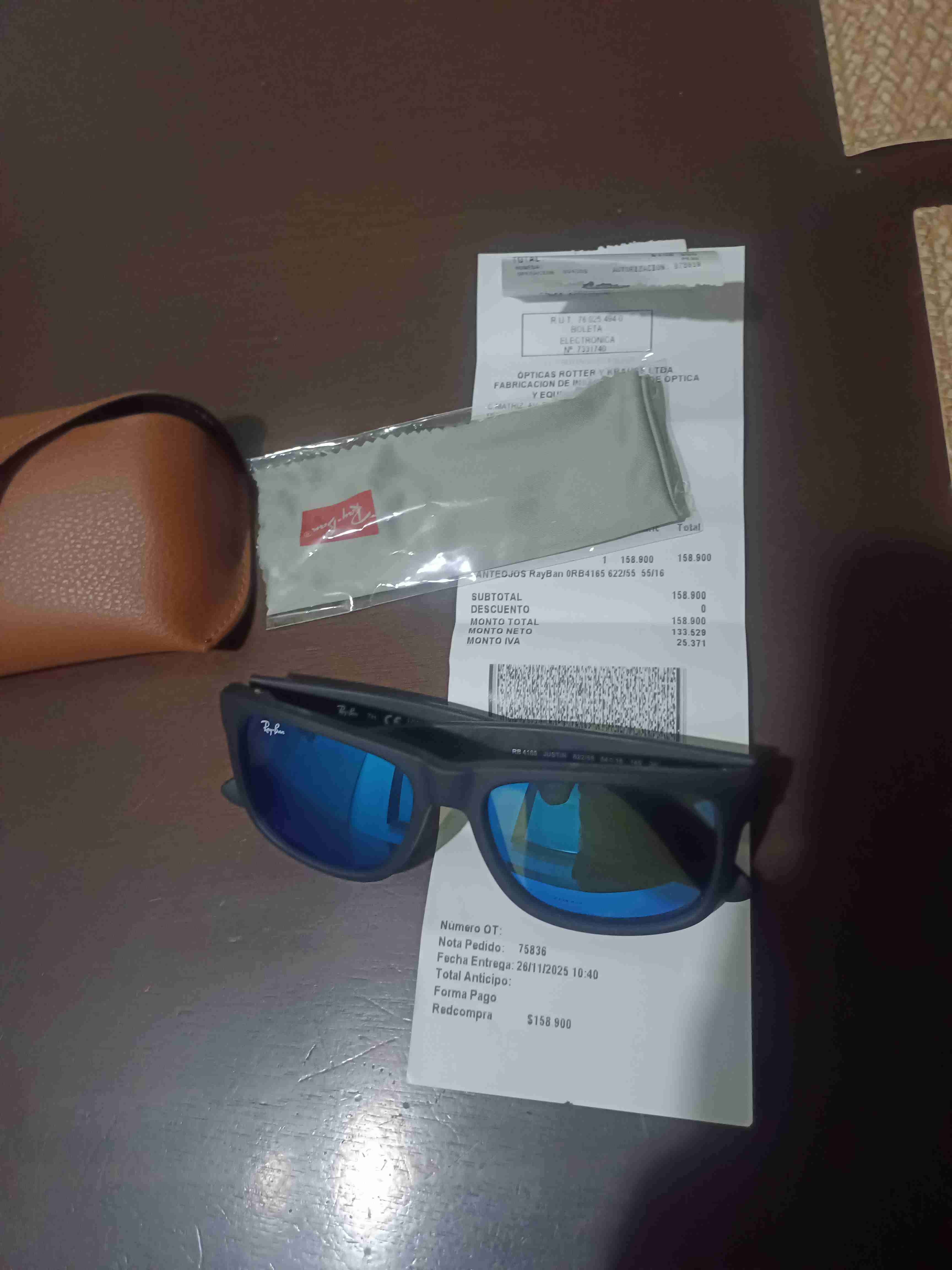 Lentes de sol Ray-Ban con lentes azules, ideal para proteger tus ojos del sol con estilo. Incluye estuche original.y boleta