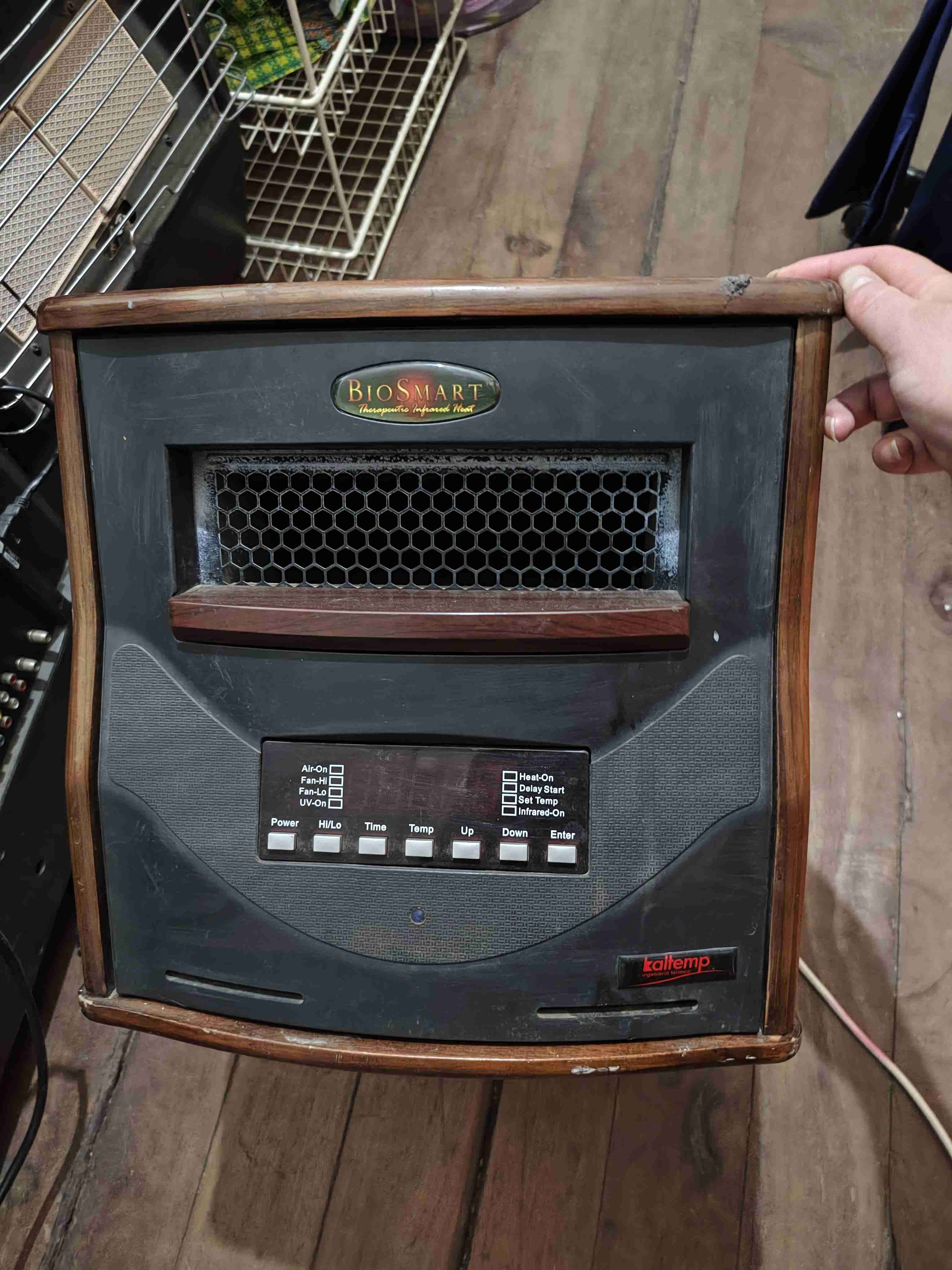 Calefactor infrarrojo para espacios interiores, marca BioSmart. Buen estado con signos de uso.