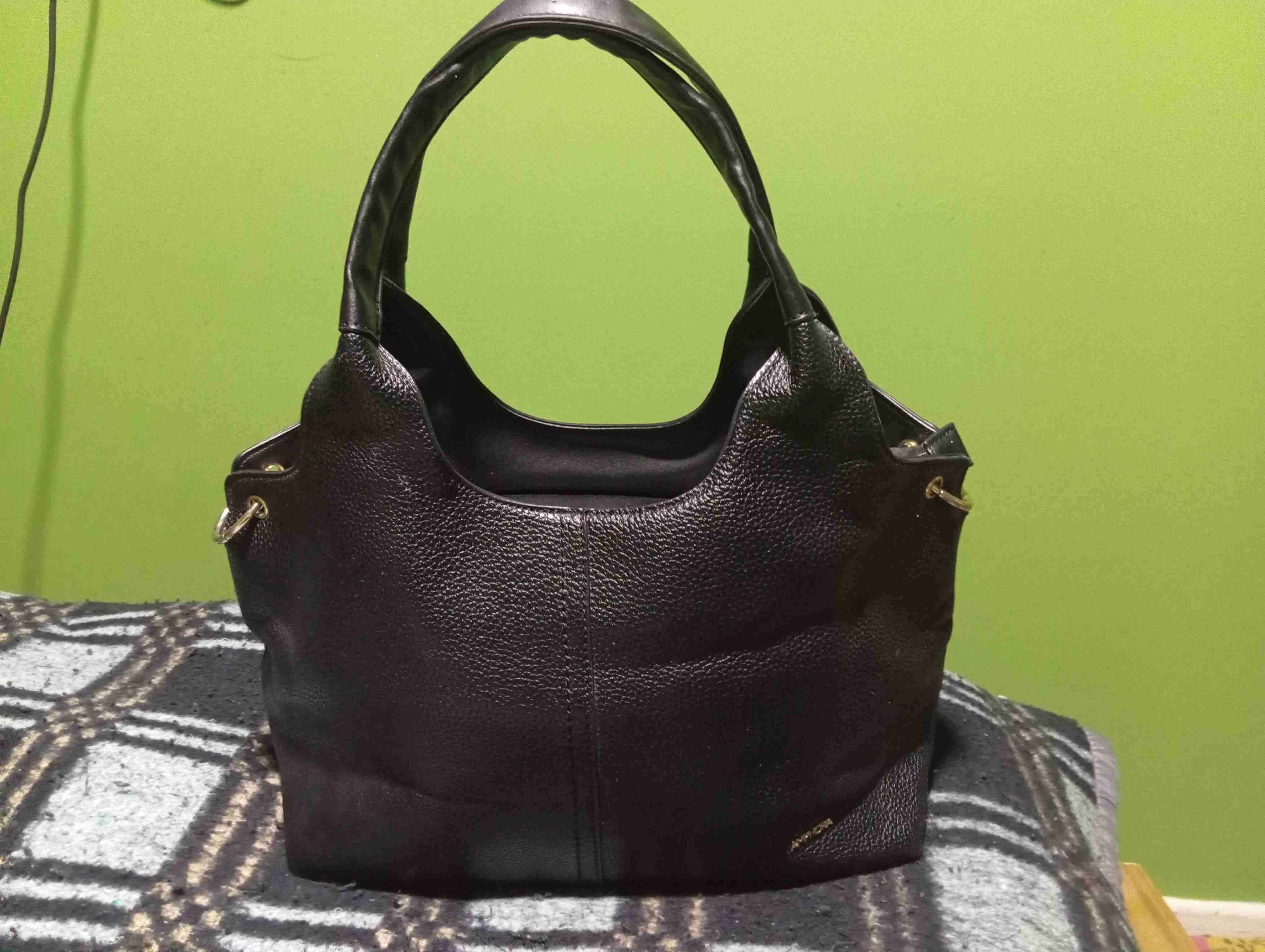 Elegante cartera de cuero negro, ideal para el día a día. En buen estado, con leves signos de uso.