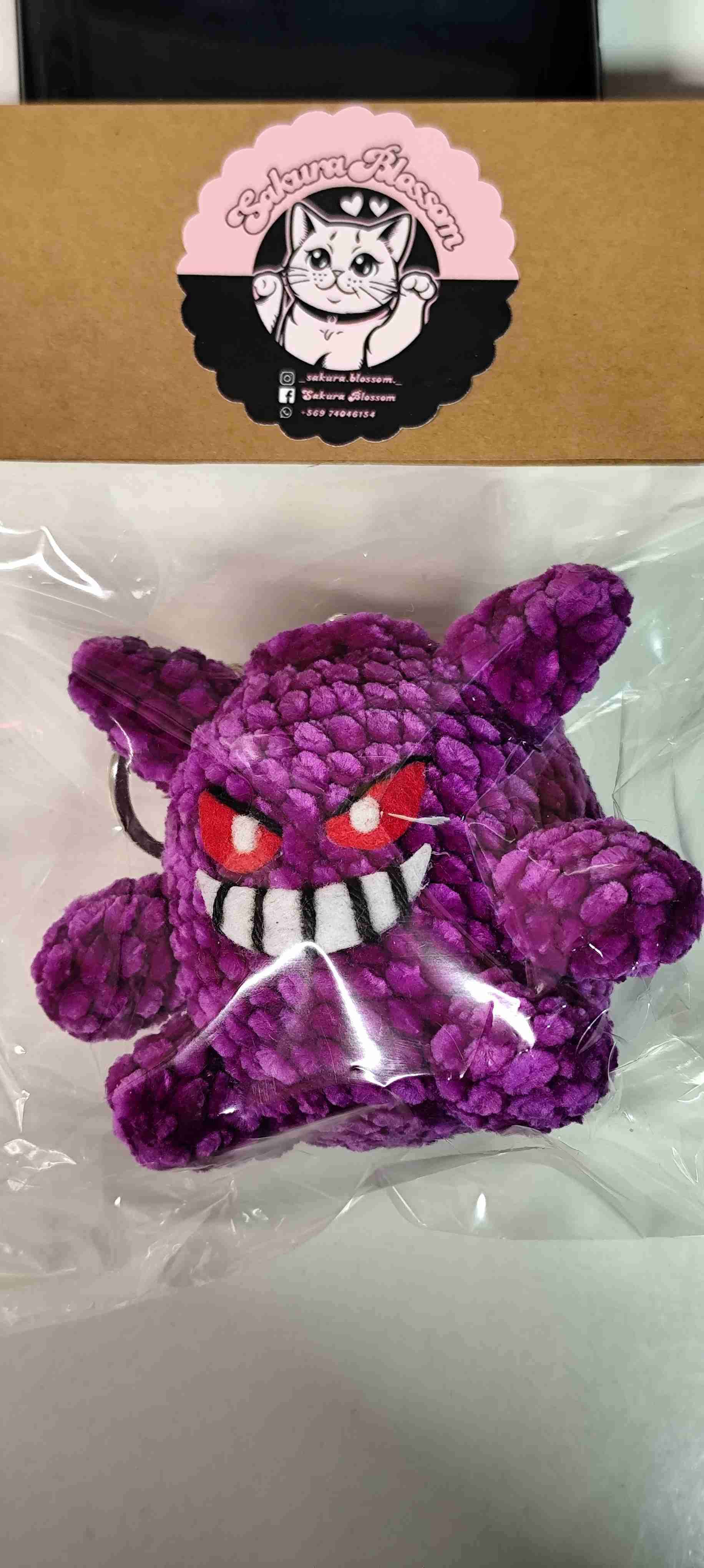 Llavero de peluche morado con diseño divertido, ideal para mochilas o llaves. Estado nuevo en su embalaje original.