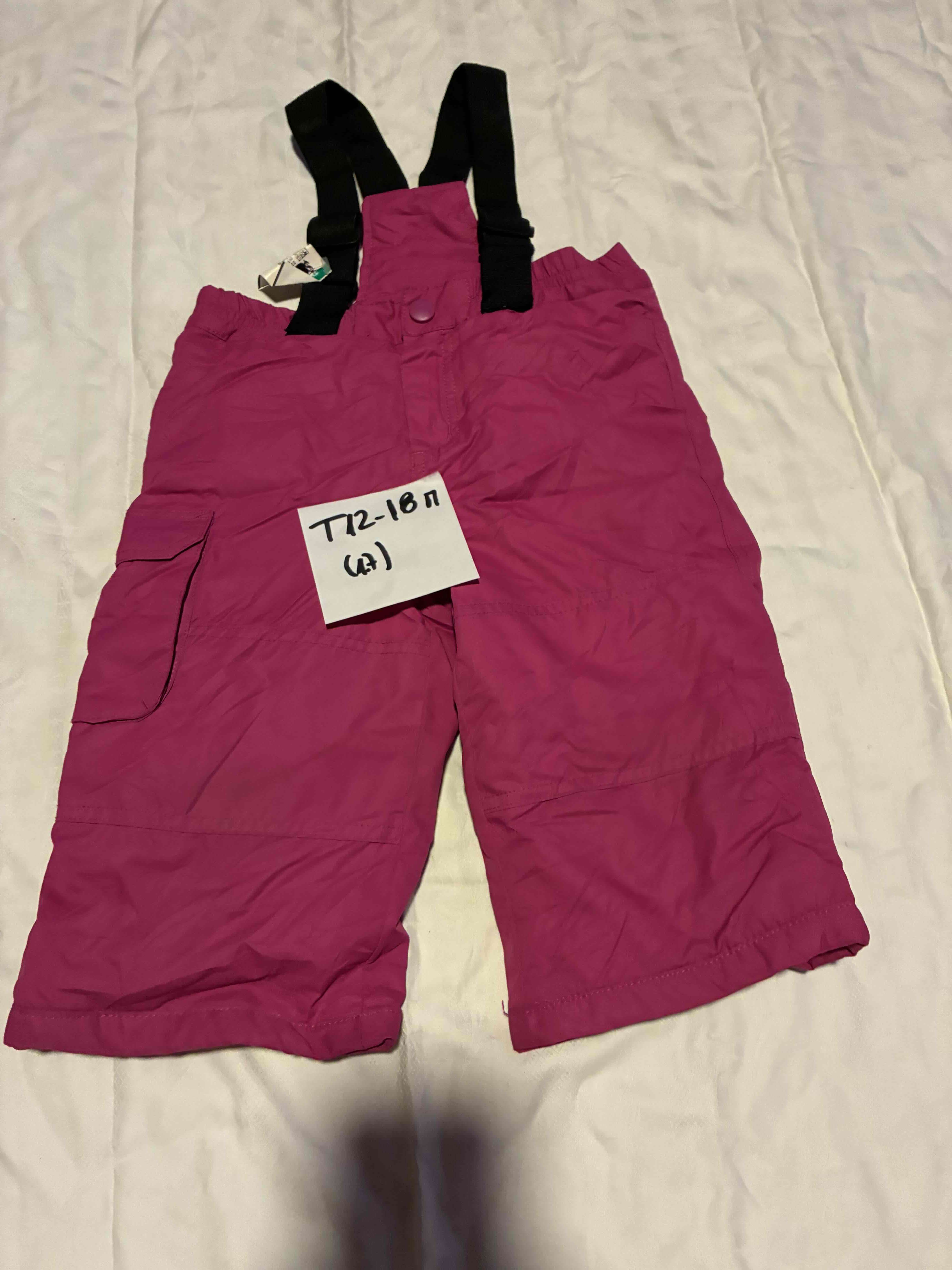 Pantalones de nieve rosados con tirantes, en buenas condiciones, ideales para mantener abrigados a los más pequeños en invierno. Impermeable y grueso