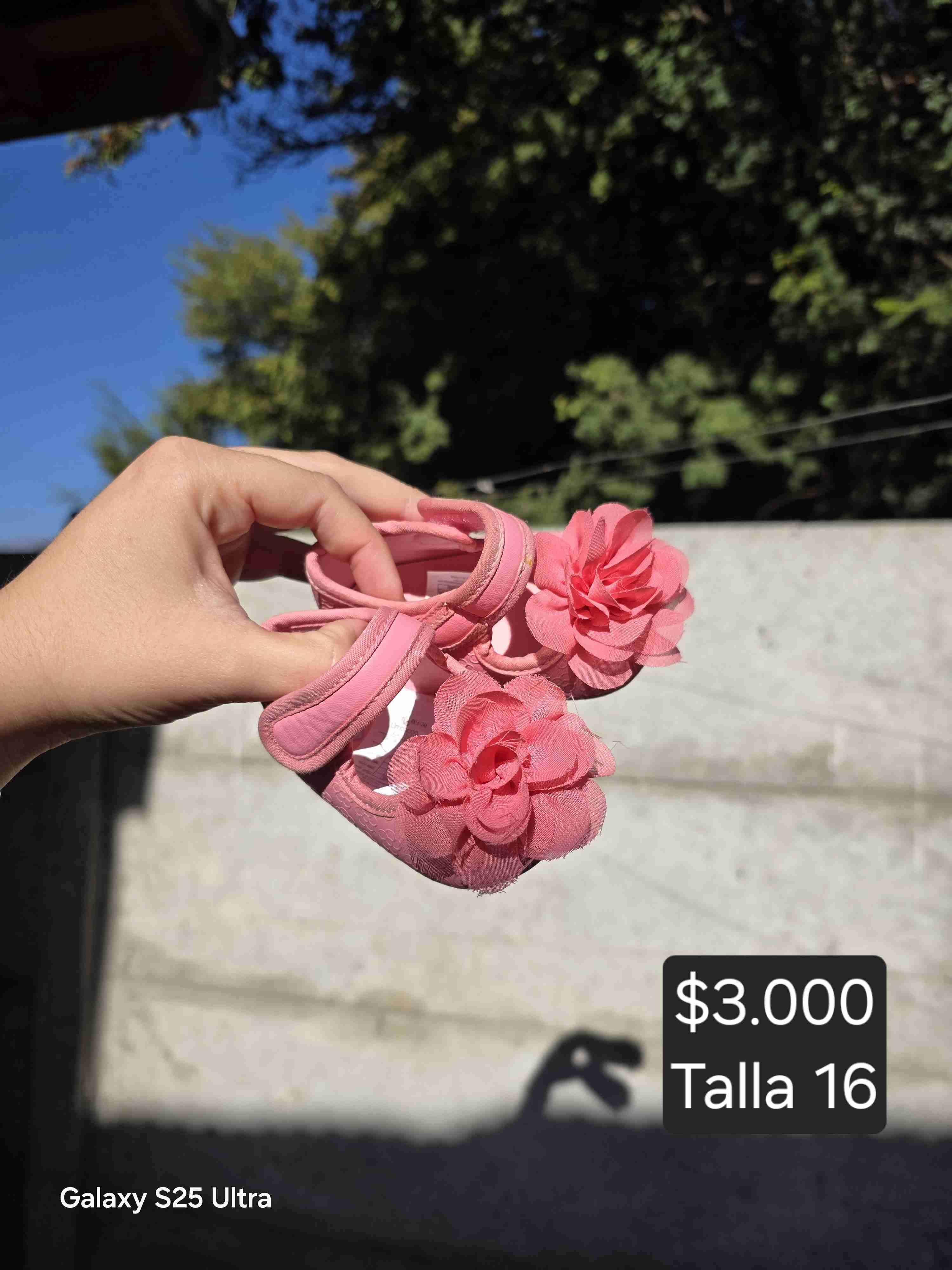 Tiernas sandalias rosadas talla 16 con flores decorativas. Perfectas para complementar el look de tu bebé. Usadas, pero en buen estado.