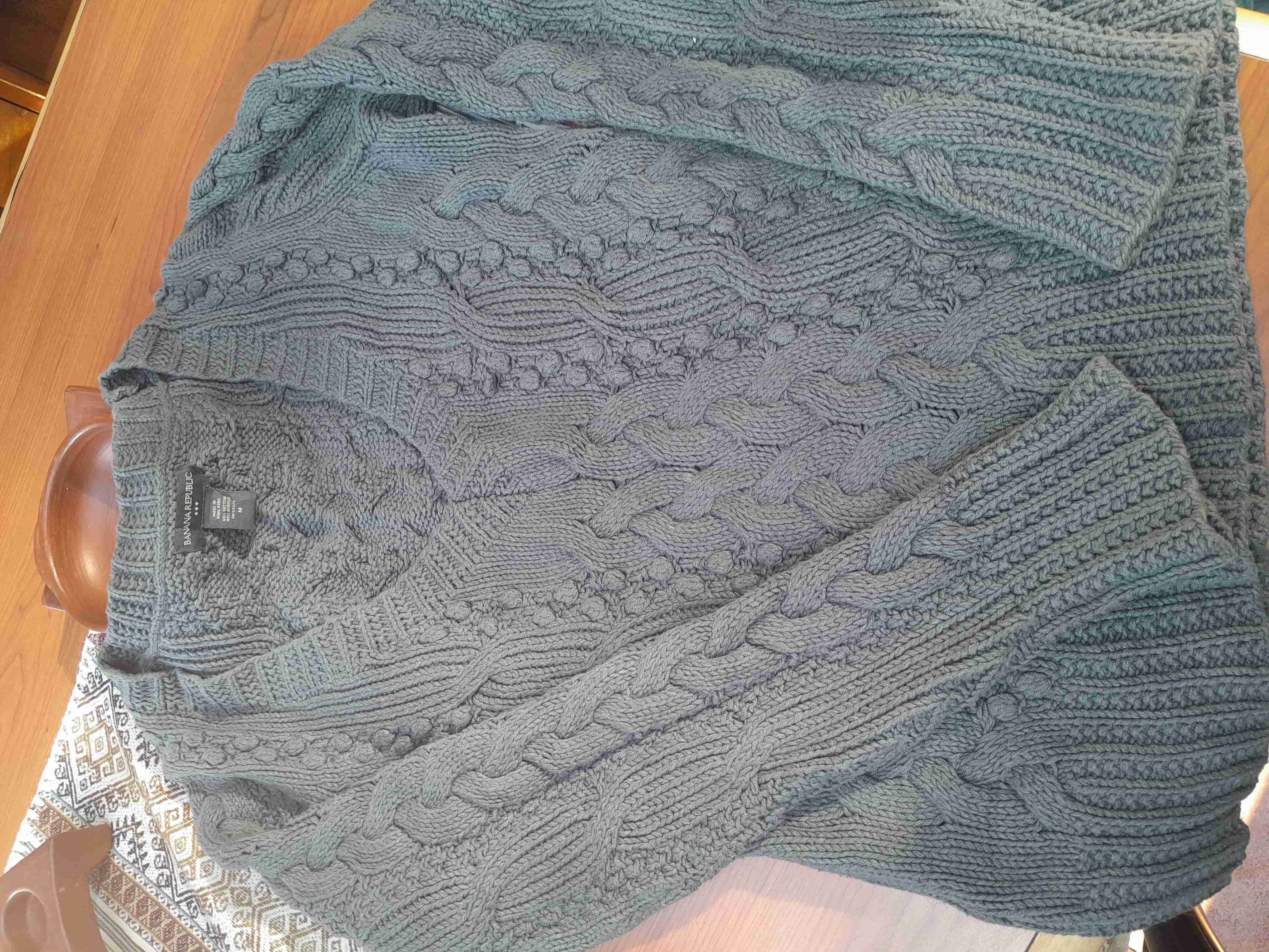 Suéter gris con diseño de punto cable, perfecto para días fríos. En buen estado general.