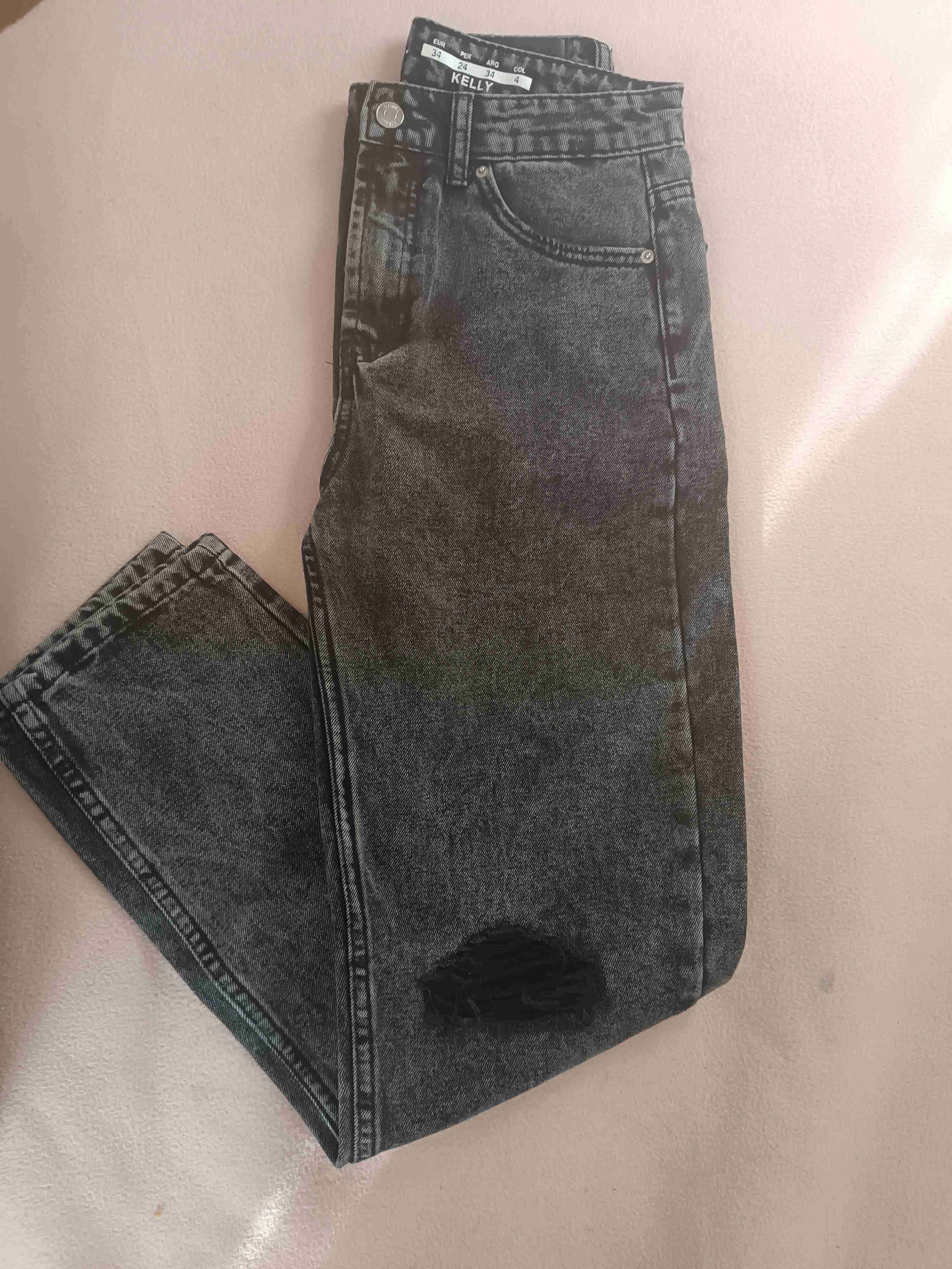 Jeans gris estilo casual con efecto desgastado. Perfecto para un look urbano.