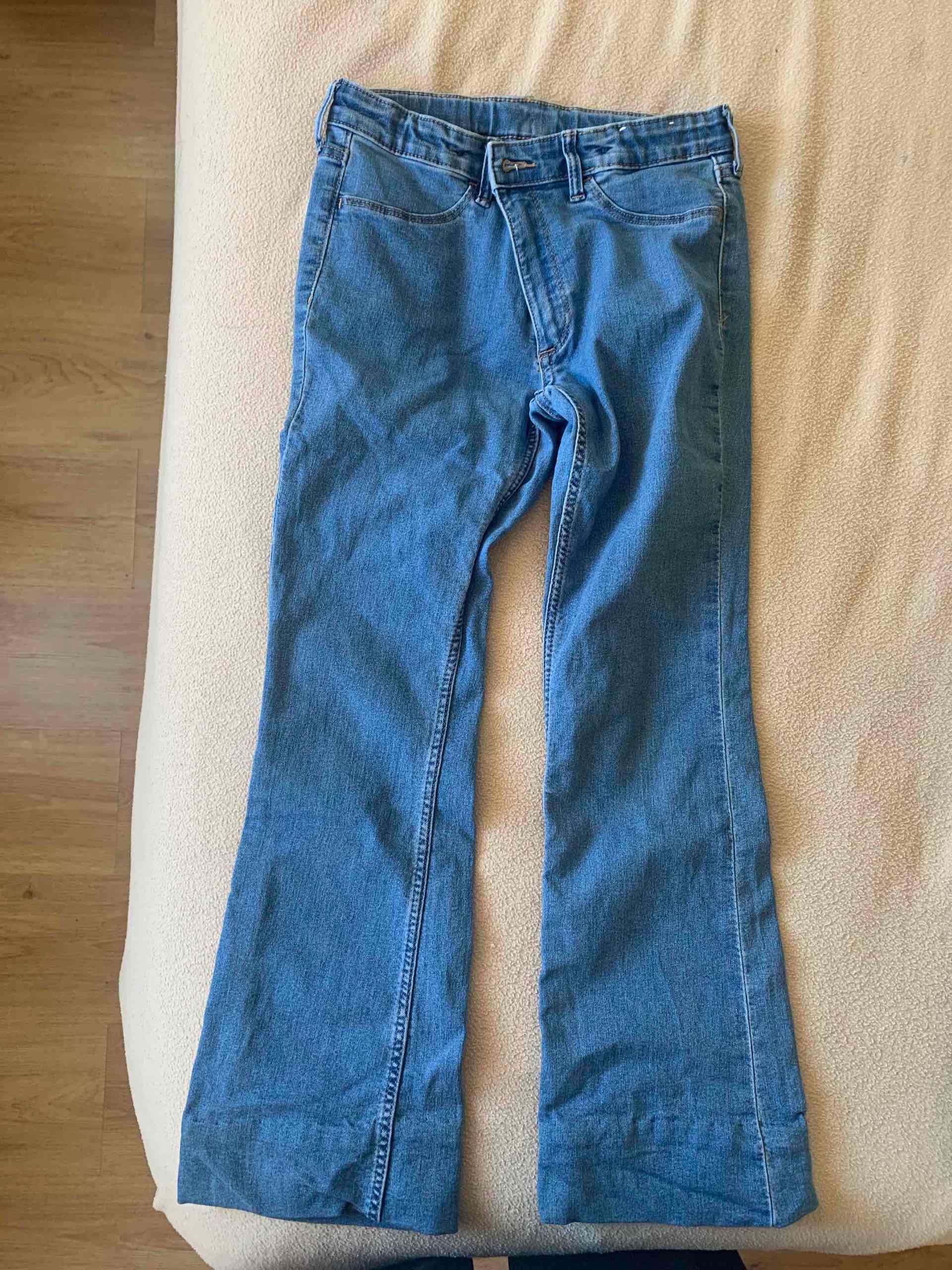 Jeans acampanados en buen estado, ideal para un look casual. Tela de mezclilla ligera.