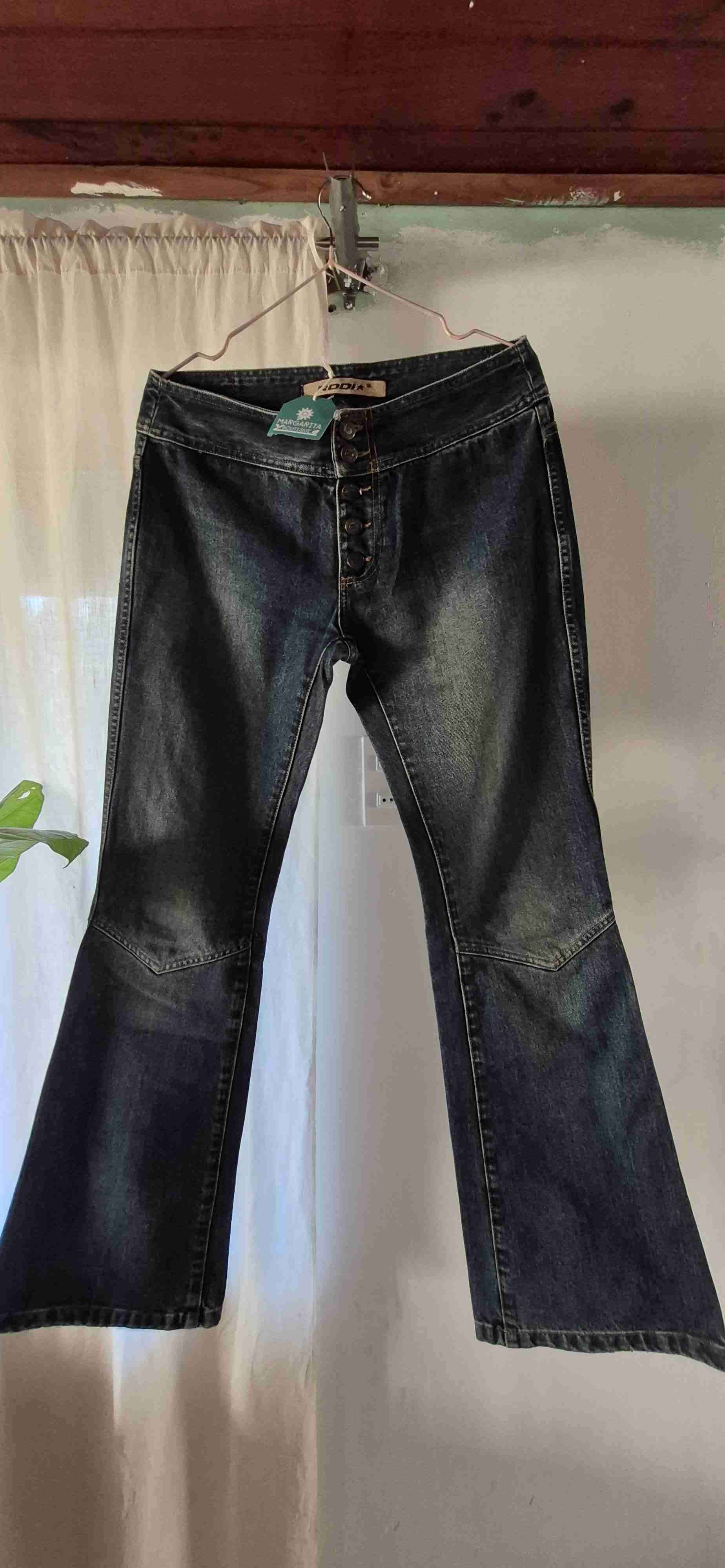 Jeans acampanados en color oscuro, estilo clásico. En buen estado, perfecto para uso diario.