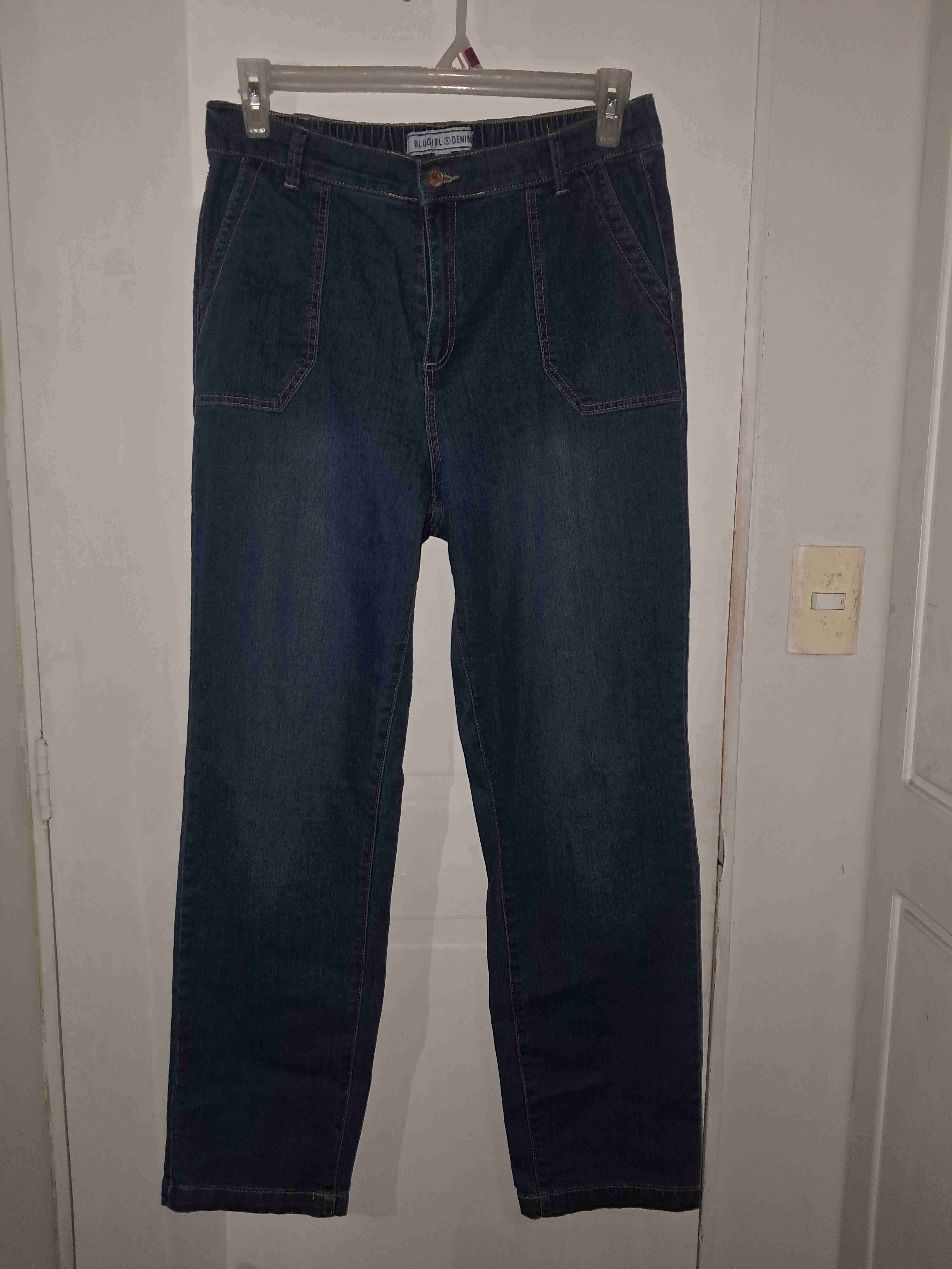 Jeans azul oscuro pitillo, talla 48, sin uso, bolsillos grandes