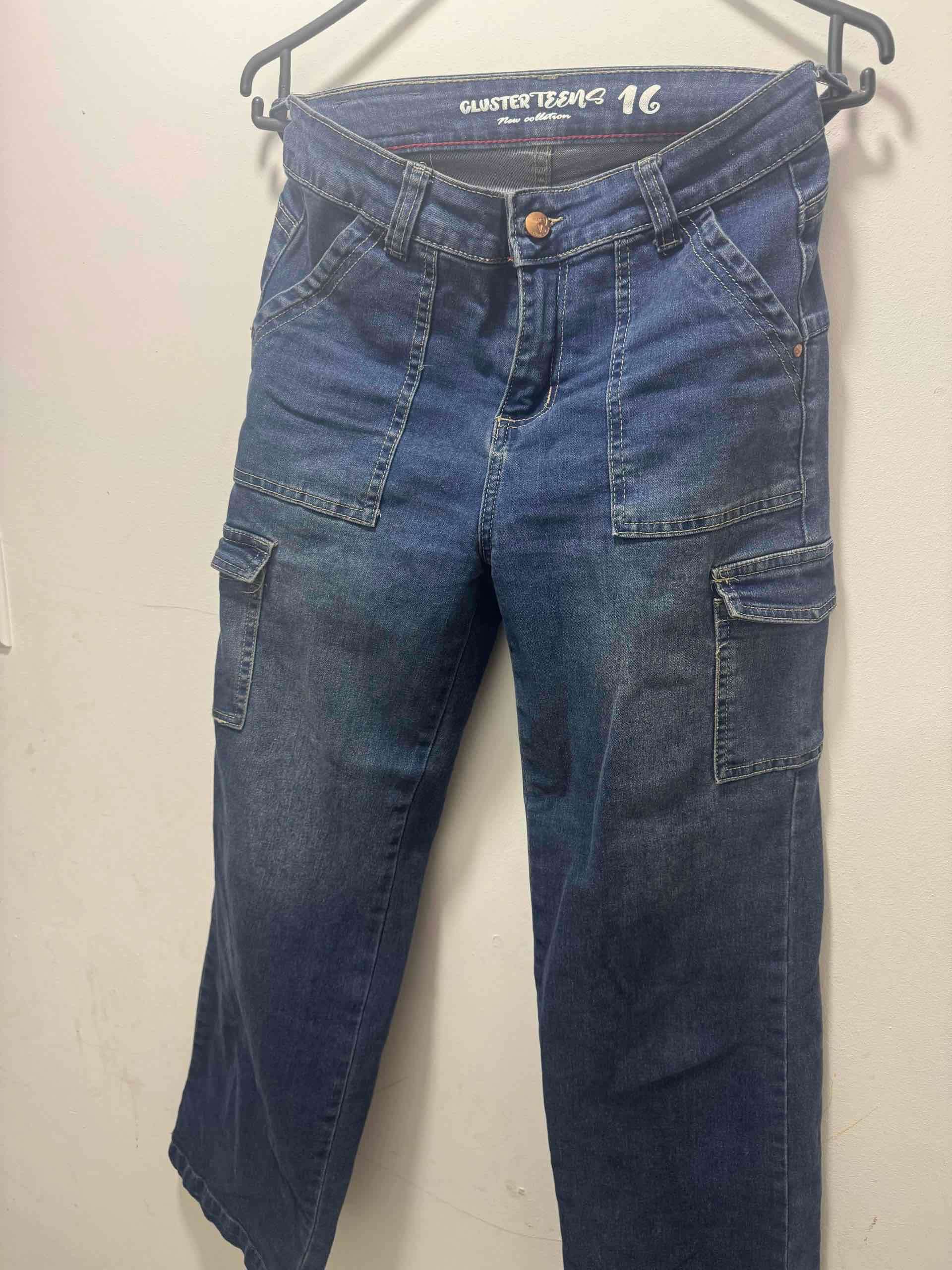 Jeans azul con bolsillos laterales, corte recto. Ideal para uso casual diario. Dicen talla 16 pero equivale a un 36 son elásticados.