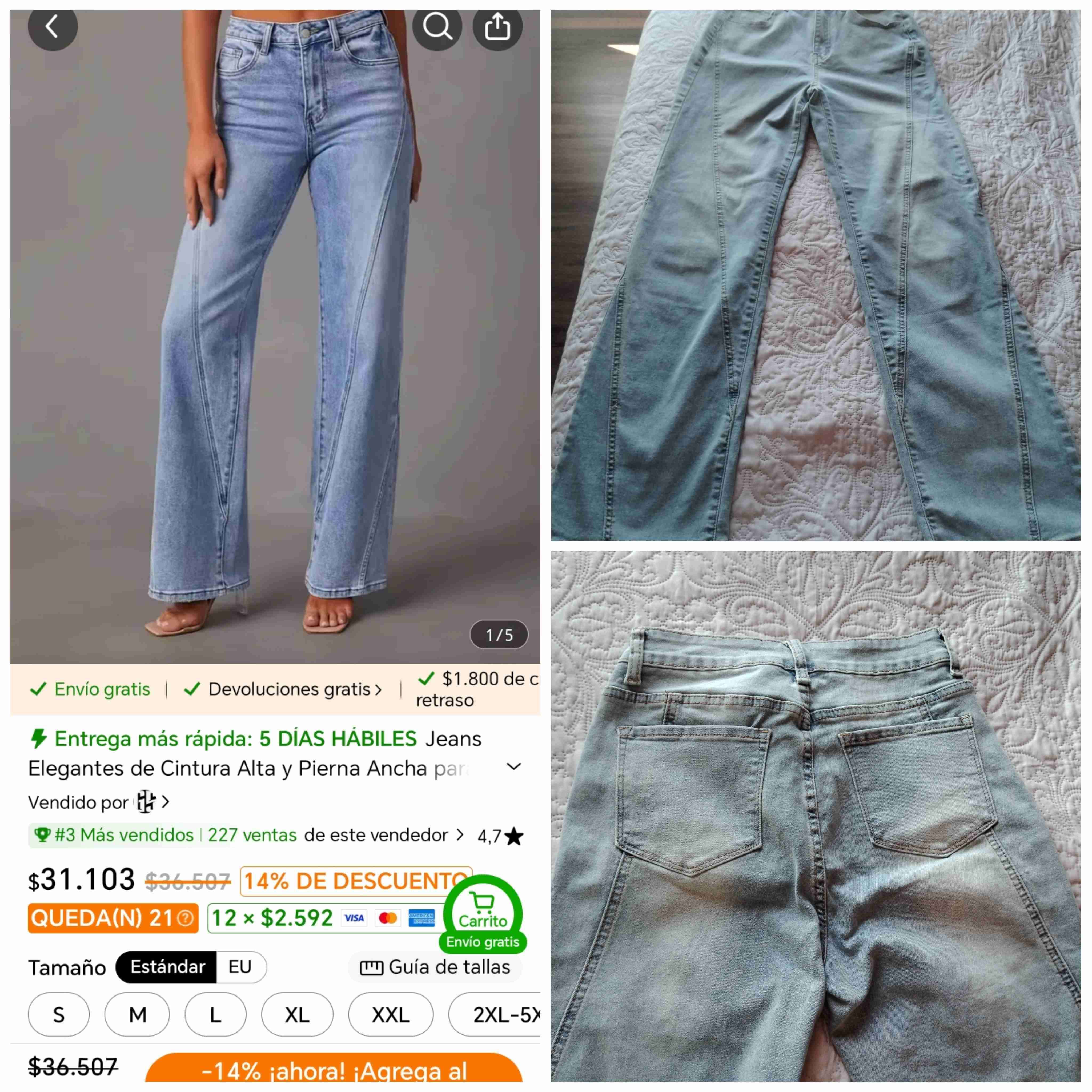 Jeans de mezclilla azul claro, estilo pierna ancha. En buen estado, ideales para un look casual y cómodo.