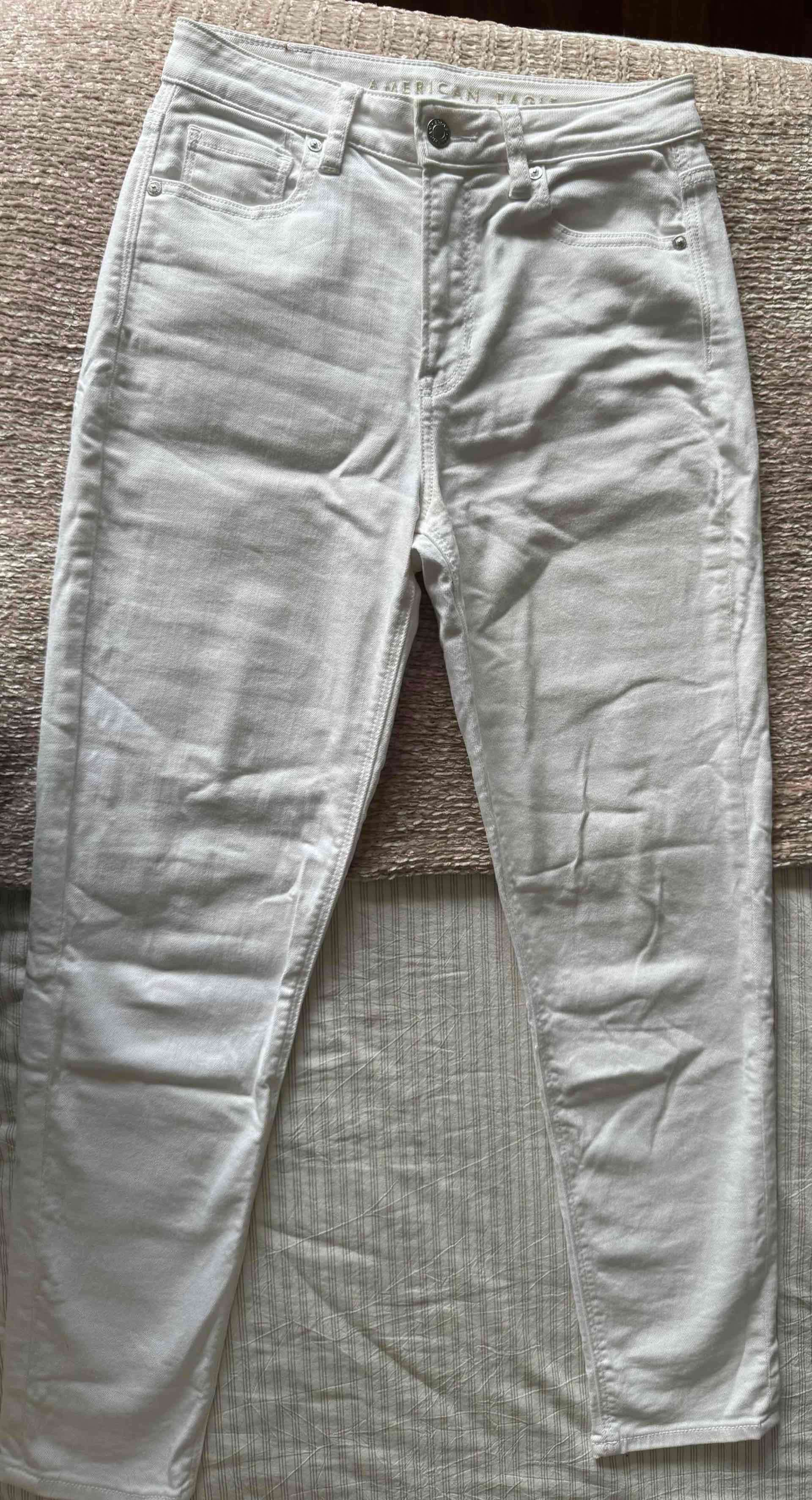 Jeans American Eagle blancos básicos, tipo mom, talla 0 regular (simil 36) un clásico versátil para cualquier temporada!