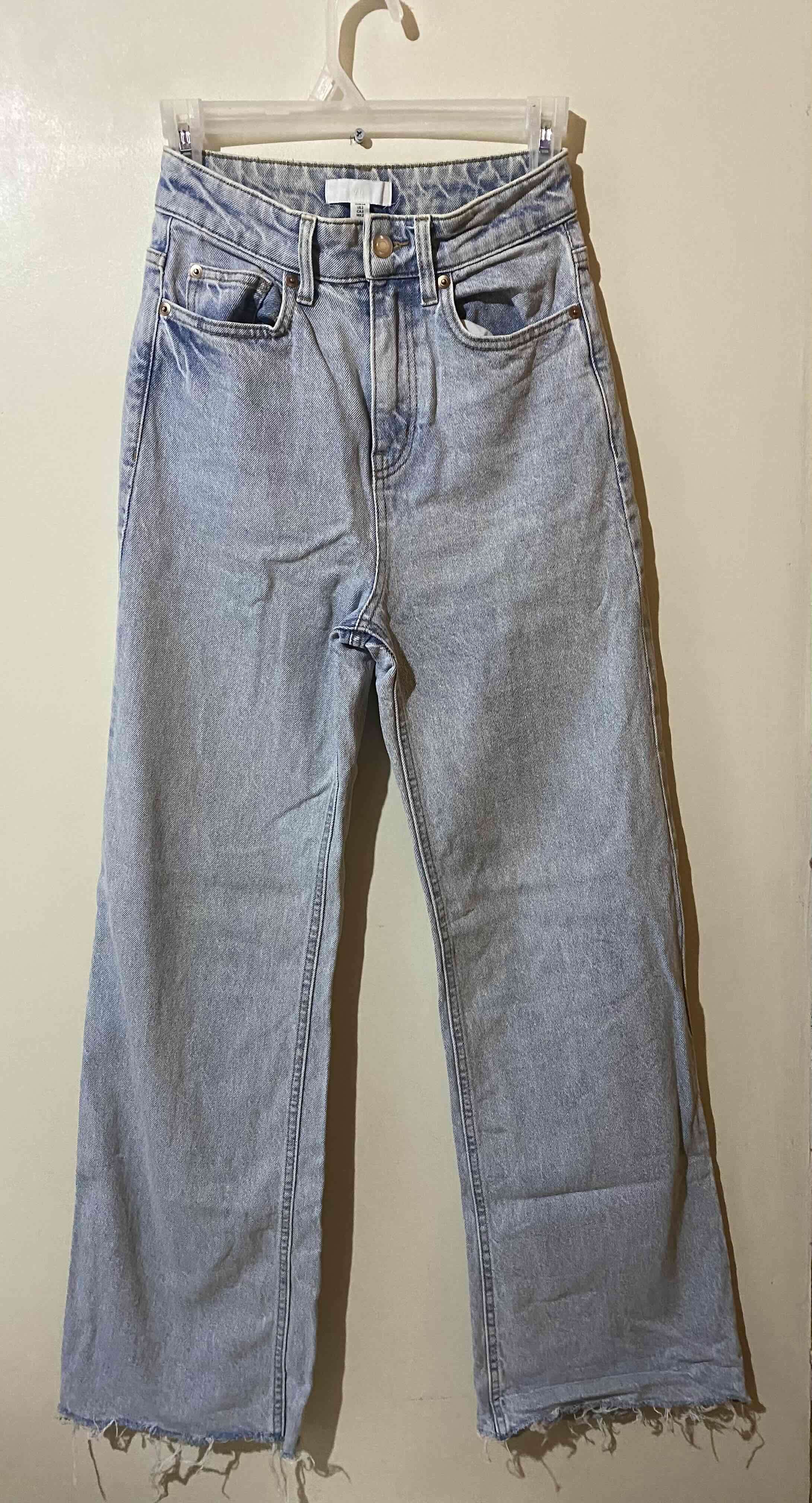 Jeans de mezclilla celeste con terminación desgastada. En buen estado general, ideal para un look casual y relajado.