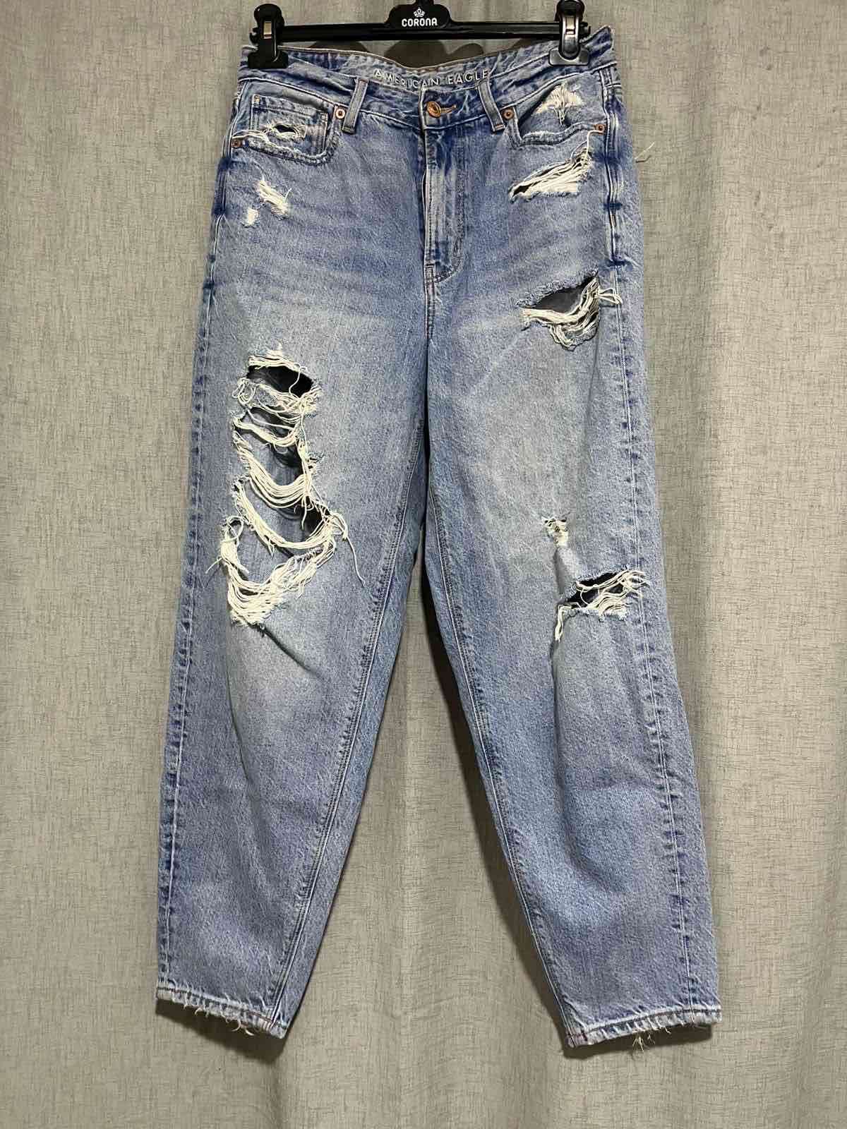 Jeans azules con un diseño rasgado moderno, perfectos para un look urbano. En buen estado con signos leves de uso.